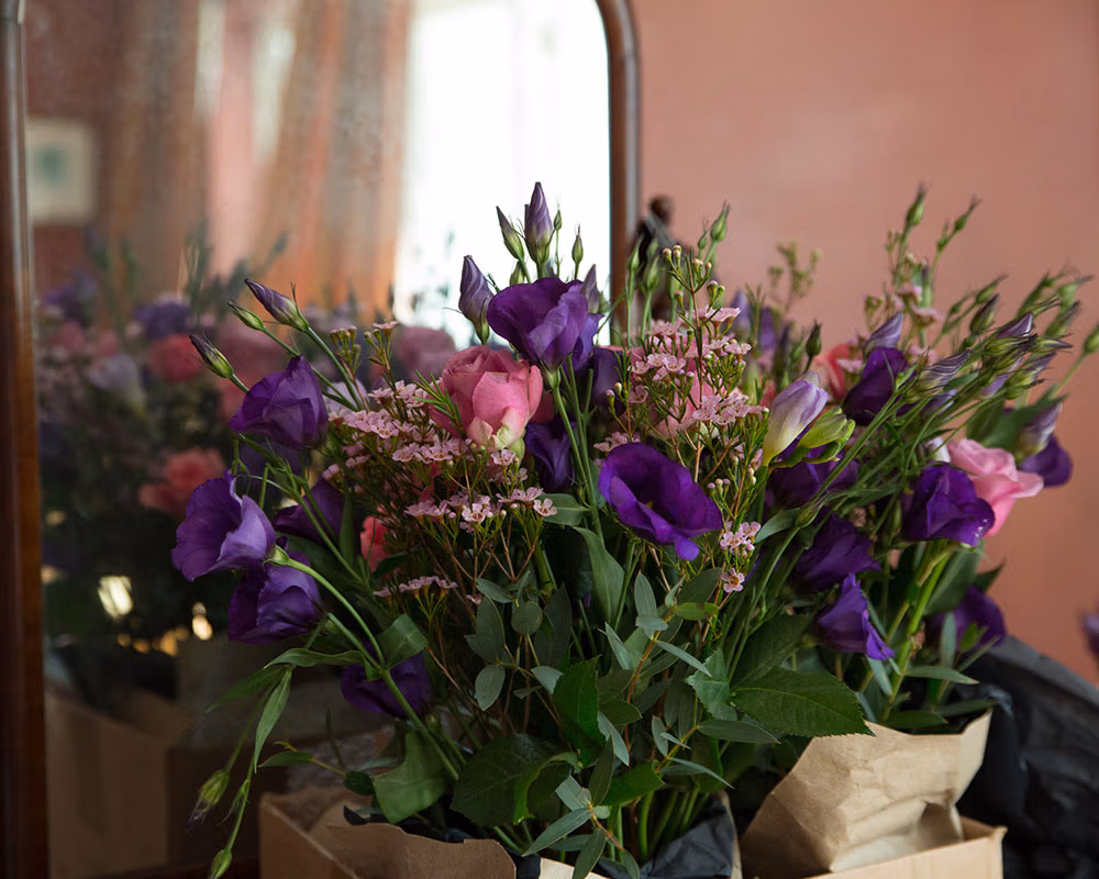 Morning light gently kissed the bouquet and the mirror, capturing the stillness before the day began — calm, soft, and full of detail.