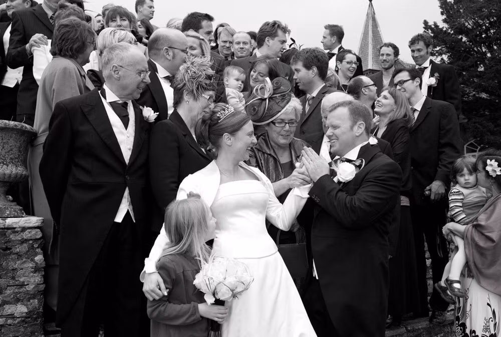 Smiles surfaced through the vows, glances were exchanged, and a few unhurried moments followed in the vestry before the register was signed. Then back into the winter air — cheers, hugs, and waiting guests outside the door.