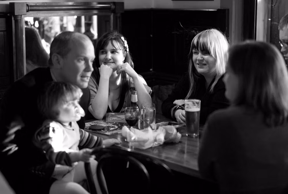 Back inside, the atmosphere softened into warmth and easy laughter. Glasses clinked, coats were loosened, and Alison and Hamish moved through the rooms with quiet contentment.