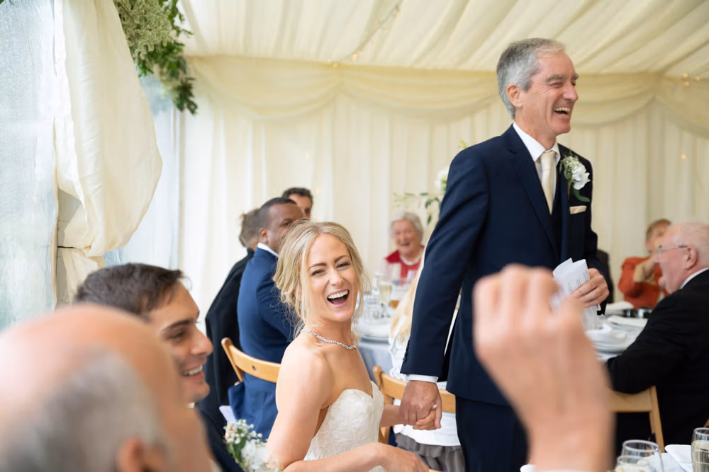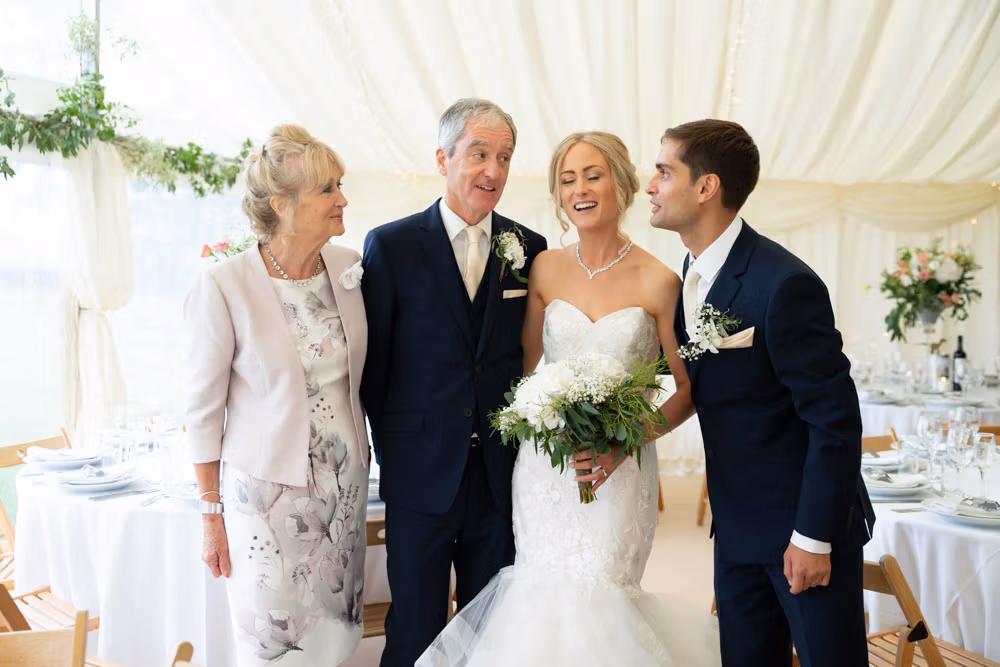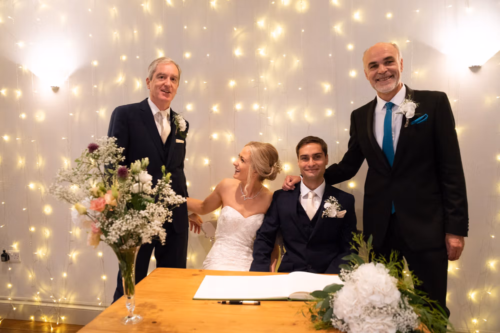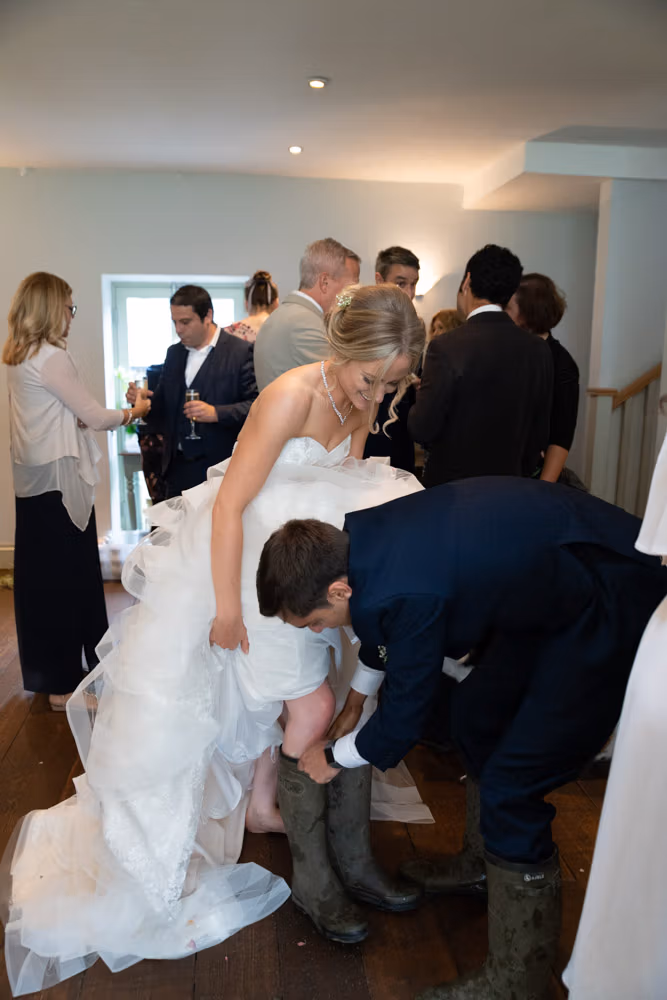 As the light faded and the rain finally softened, the day settled into laughter, warm embraces, and muddy wellies by the door. Helen and Adam’s wedding didn’t chase perfection — it simply lived in the moment. Gentle, honest, and full of heart.