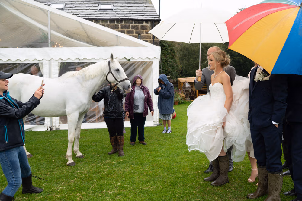 A rain-kissed summer wedding, warm smiles, and a rescue dog proudly wearing a floral collar. Helen & Adam’s day at The Chilli Barn in Otley unfolded with laughter, umbrellas, and the kind of calm moments that make documentary photography quietly rewarding.
