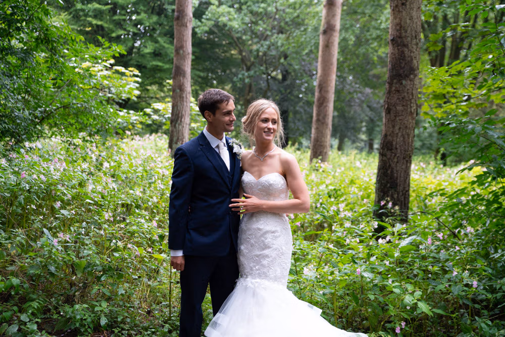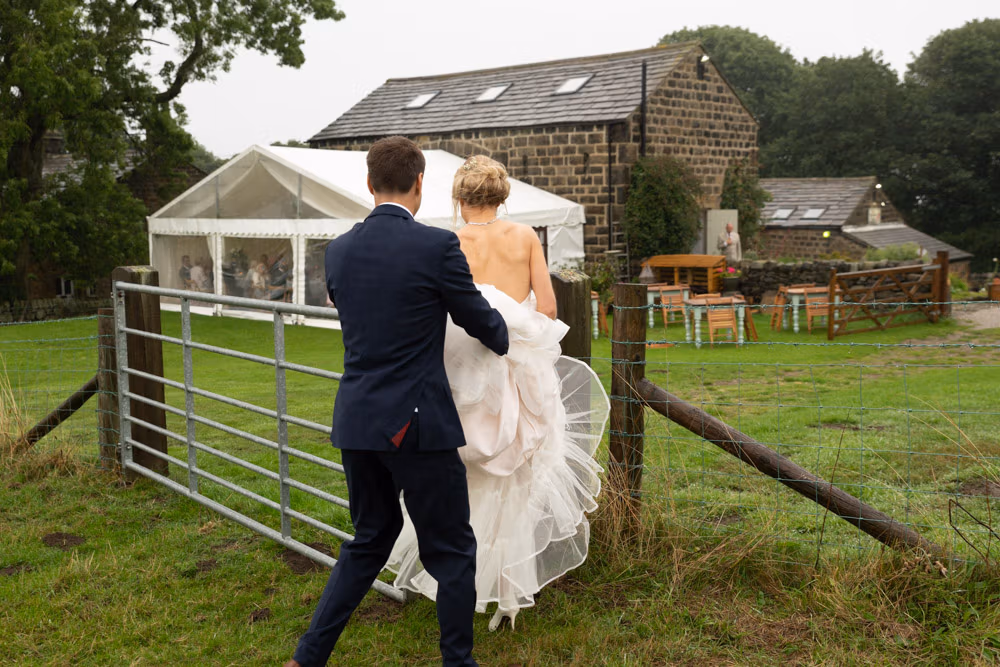 Helen and Adam were married at The Chilli Barn in Otley on a calm, rain-kissed August afternoon. The kind of soft Yorkshire rain that never quite settles — drifting through the trees and making every shade of green come alive.