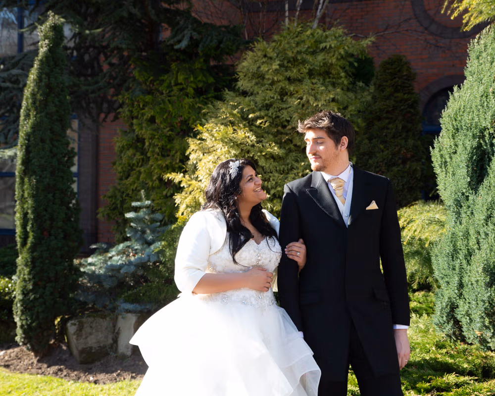 Zehra & Richard brought such warmth to this spring wedding at Crowne Plaza Leeds.. The sun showed up for them — lighting the trees in the little garden area behind the venue, where we slipped away for a few quiet portraits. Zehra’s smile is something I remember from their engagement session too — never far away, always genuine.