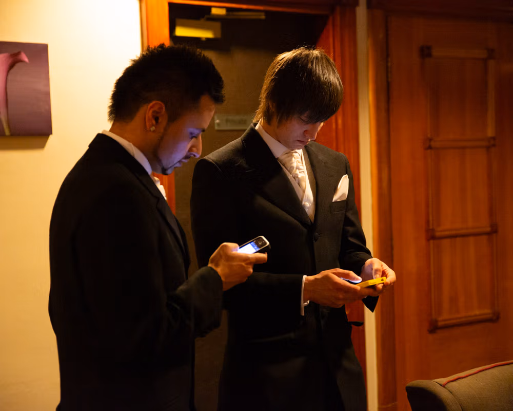 In a quieter corner of the suite, her cousin carefully adjusted the