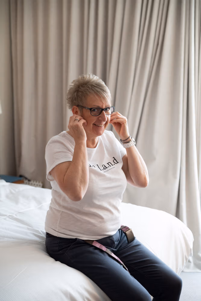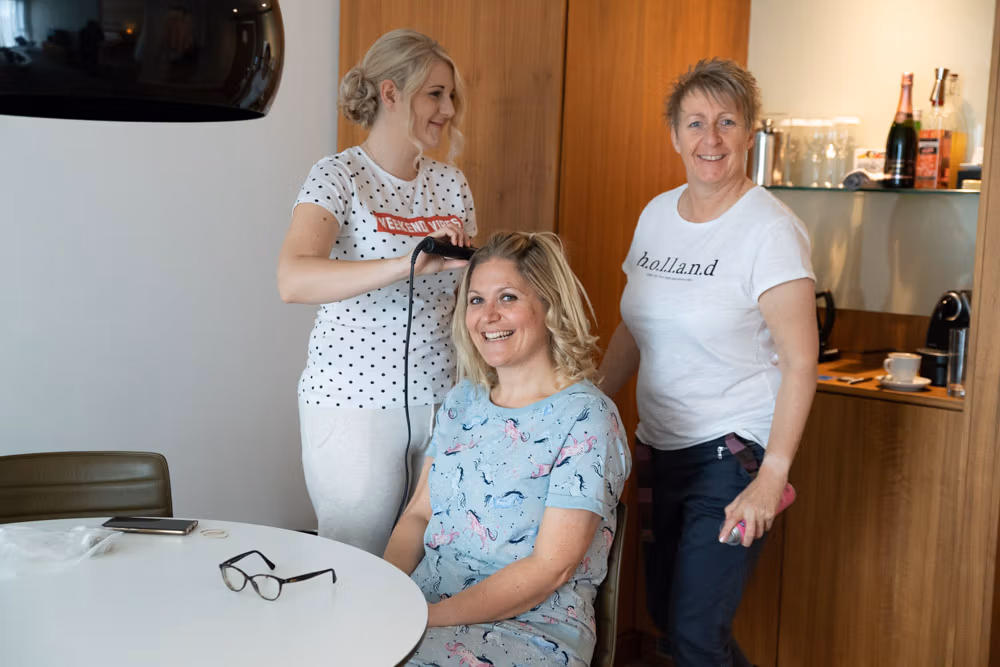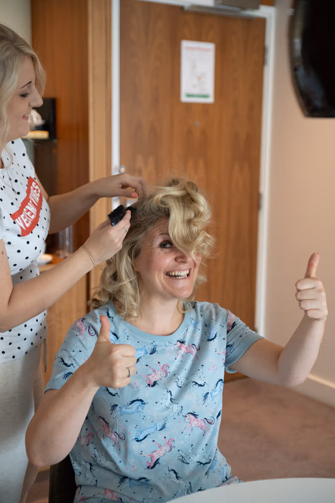 The morning began with easy laughter and familiar smiles. Tracey’s daughter carefully styled her hair, while Clare’s grin never seemed to fade — the kind of quiet joy that set the tone for the whole day.