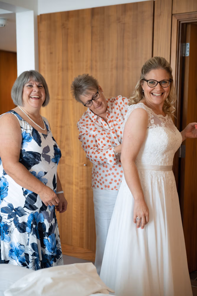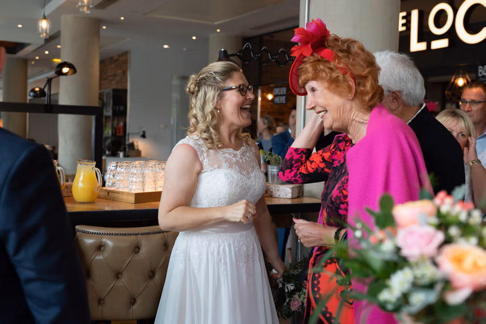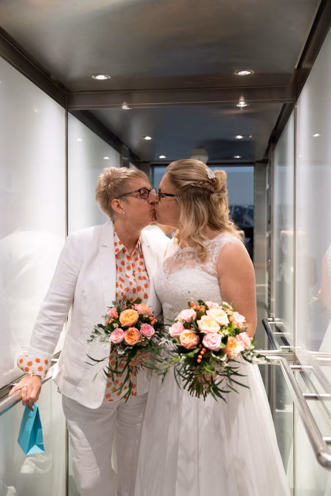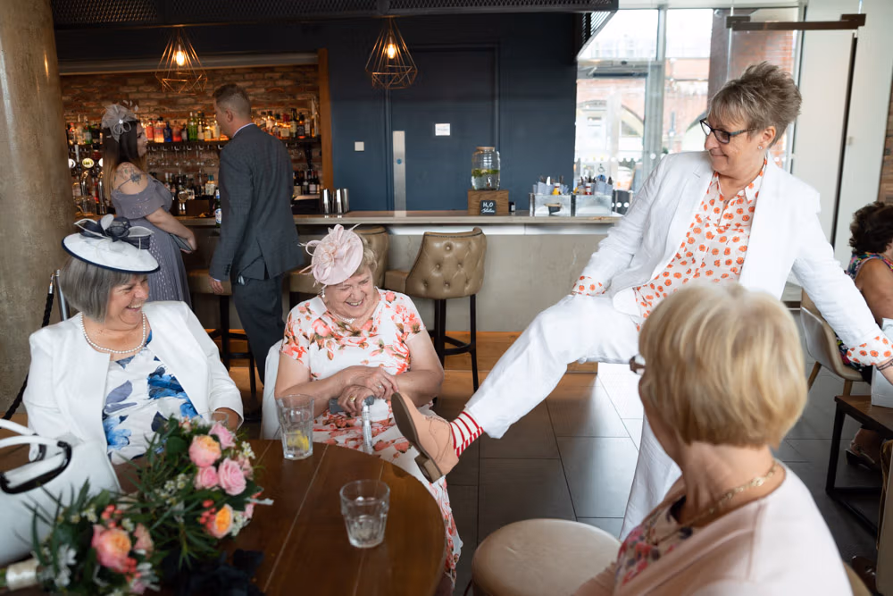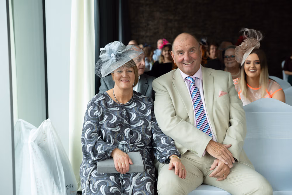 Before it all began, a few light-hearted moments unfolded in the hotel lifts — quick, joyful frames filled with laughter. Clare and Tracey chose to walk in together, a simple decision that felt entirely their own.