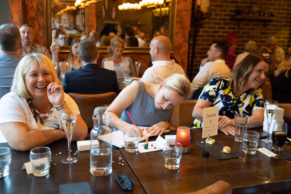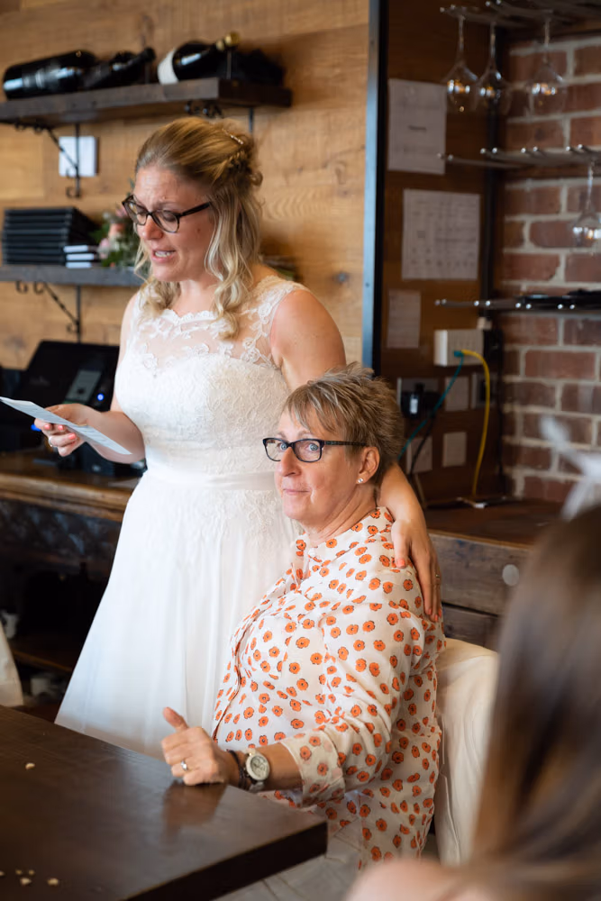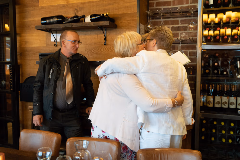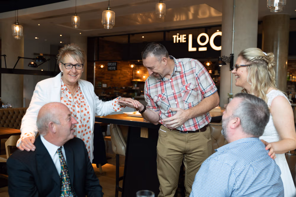 Hugs, smiles, and an easy warmth filled the room as everyone gathered downstairs at The Lock. It was immediately clear how deeply Clare and Tracey are loved — the celebration felt open, supportive, and full of shared joy.