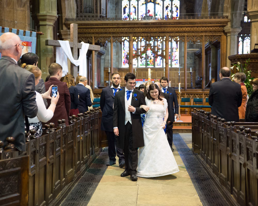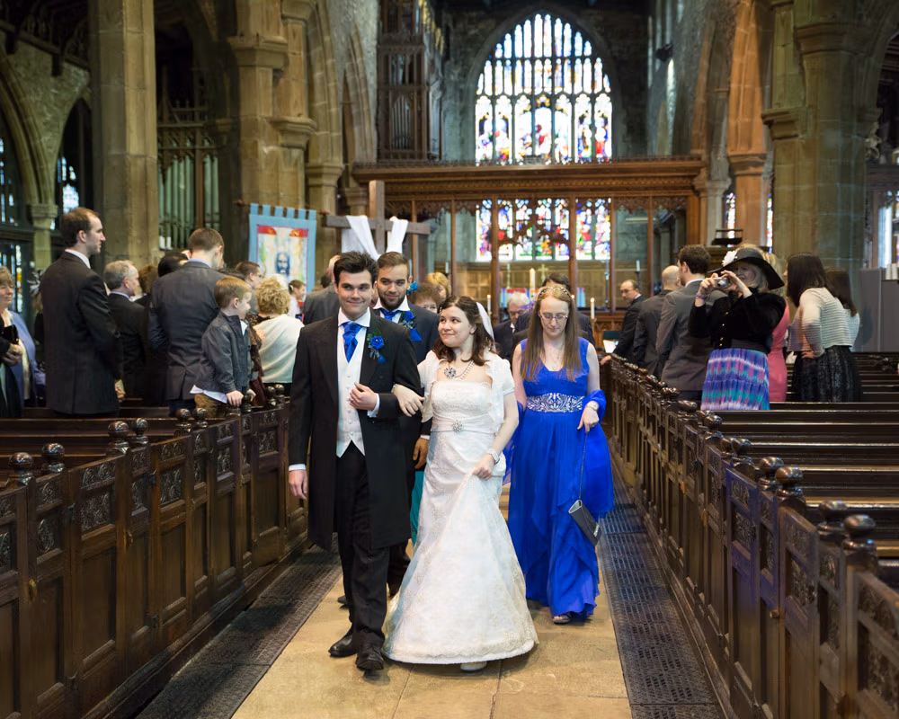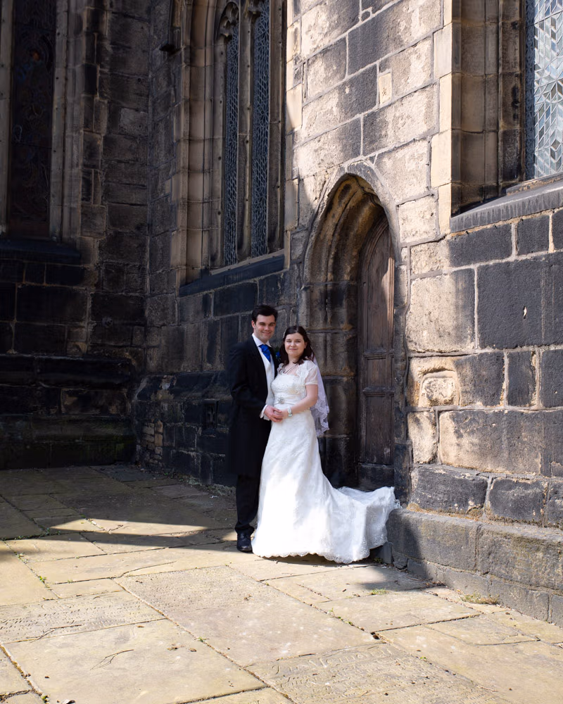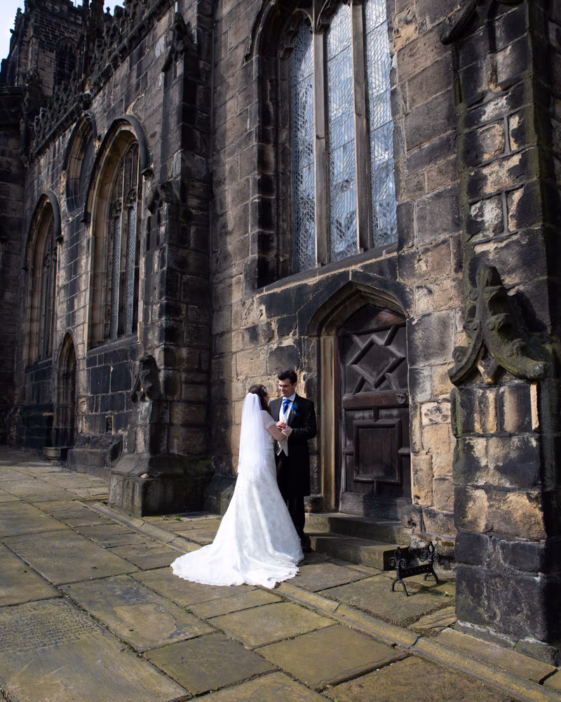 Claire & Tom’s wedding day was filled with character, creativity, and the fresh calm of early spring. Their ceremony took place beneath the soaring gothic arches of Halifax Minster — a stunning, historic venue alive with light, music, and laughter.