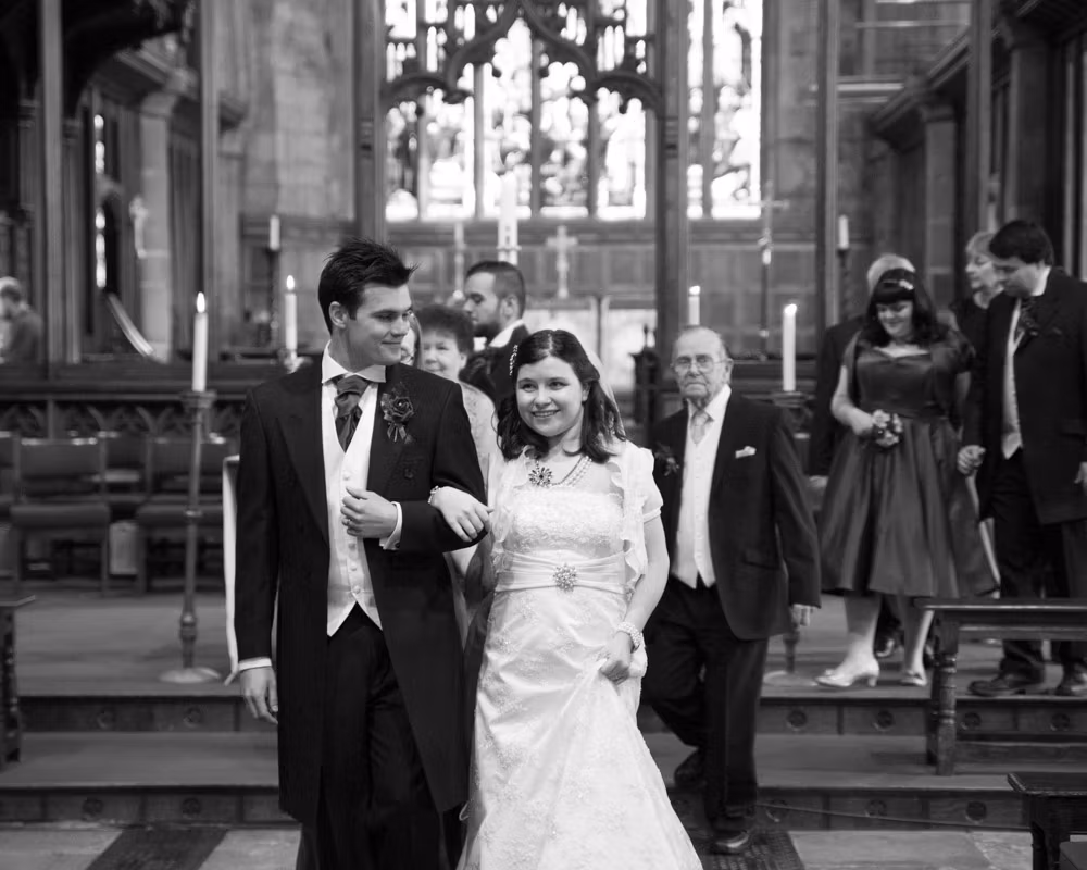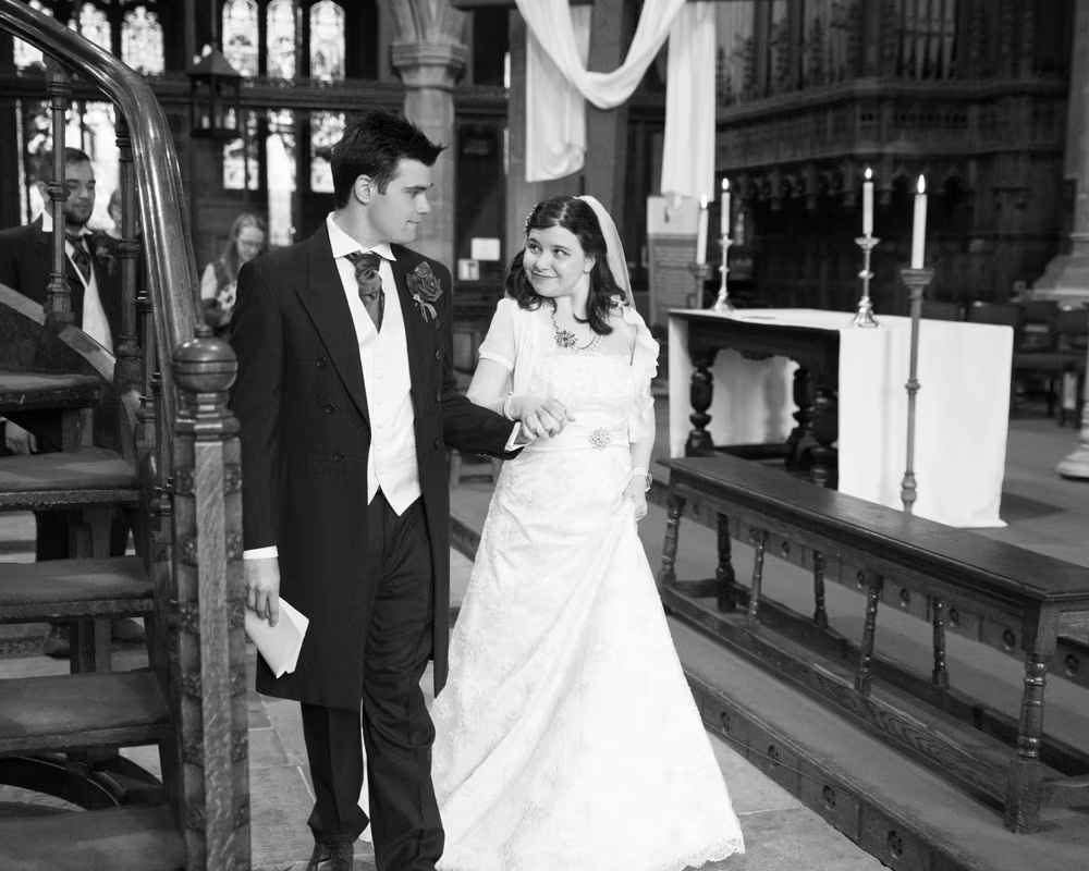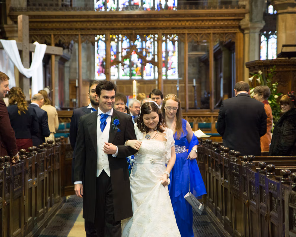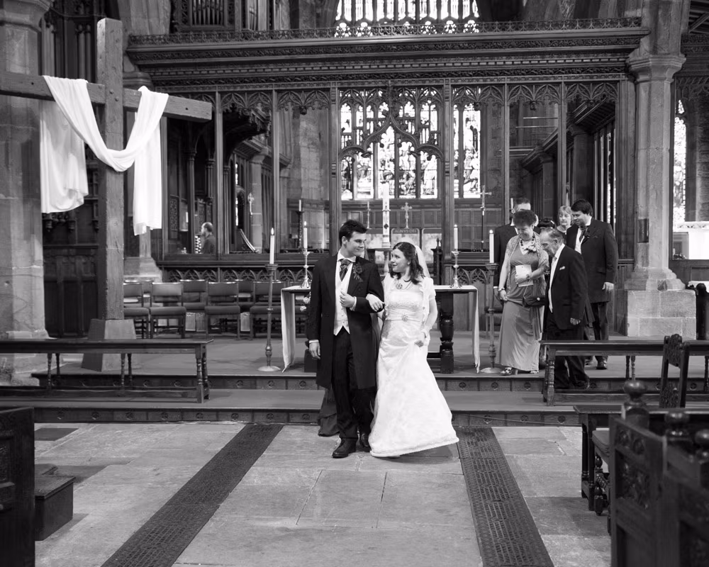 Claire & Tom’s wedding day was filled with character, creativity, and the fresh calm of early spring. Their ceremony took place beneath the soaring gothic arches of Halifax Minster — a stunning, historic venue alive with light, music, and laughter.