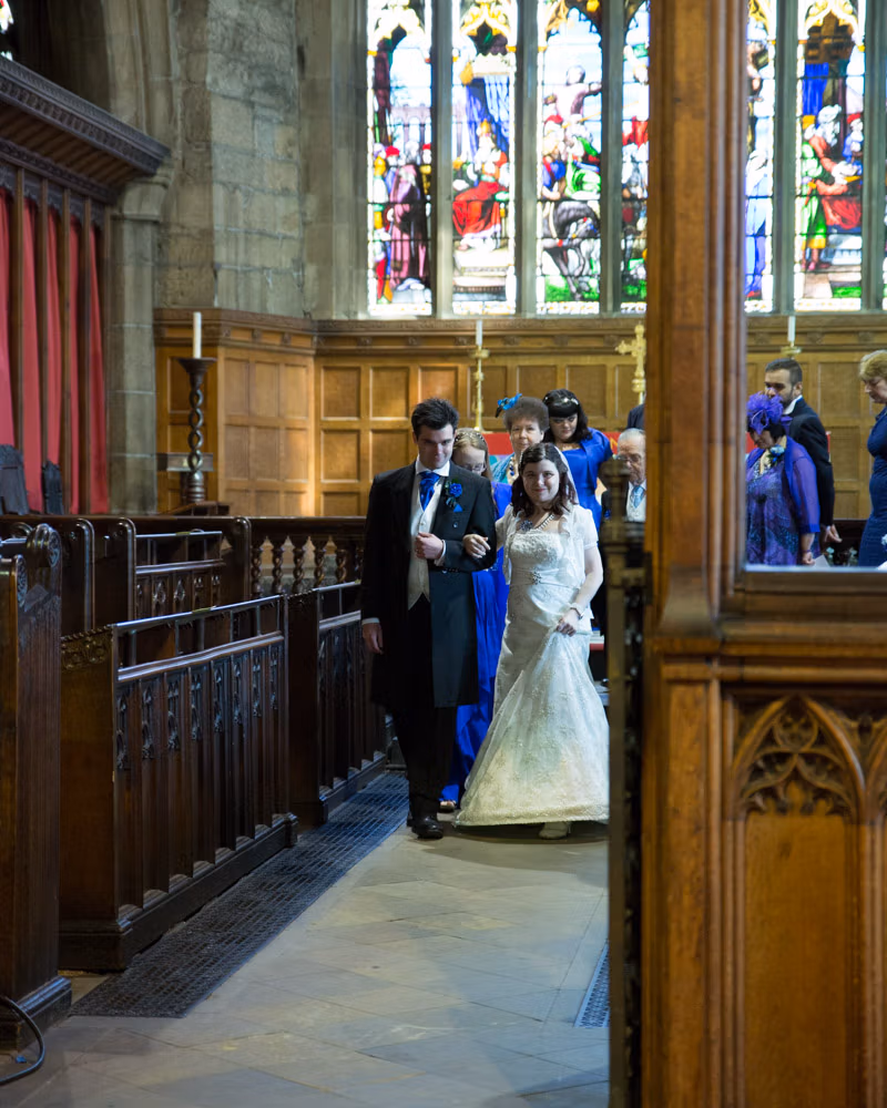 Halifax Minster is one of the most striking and historic places I’ve ever photographed a ceremony. The space feels ancient and sacred, with towering stone columns, stained glass, and a sense of stillness that made Claire & Tom’s vows all the more moving.