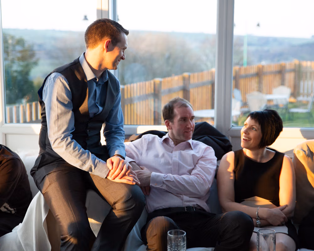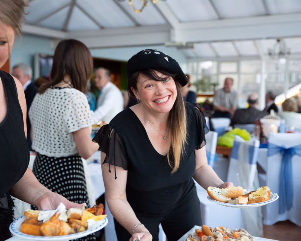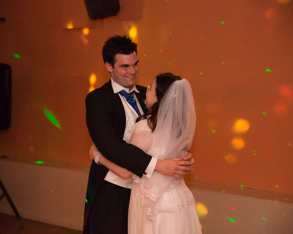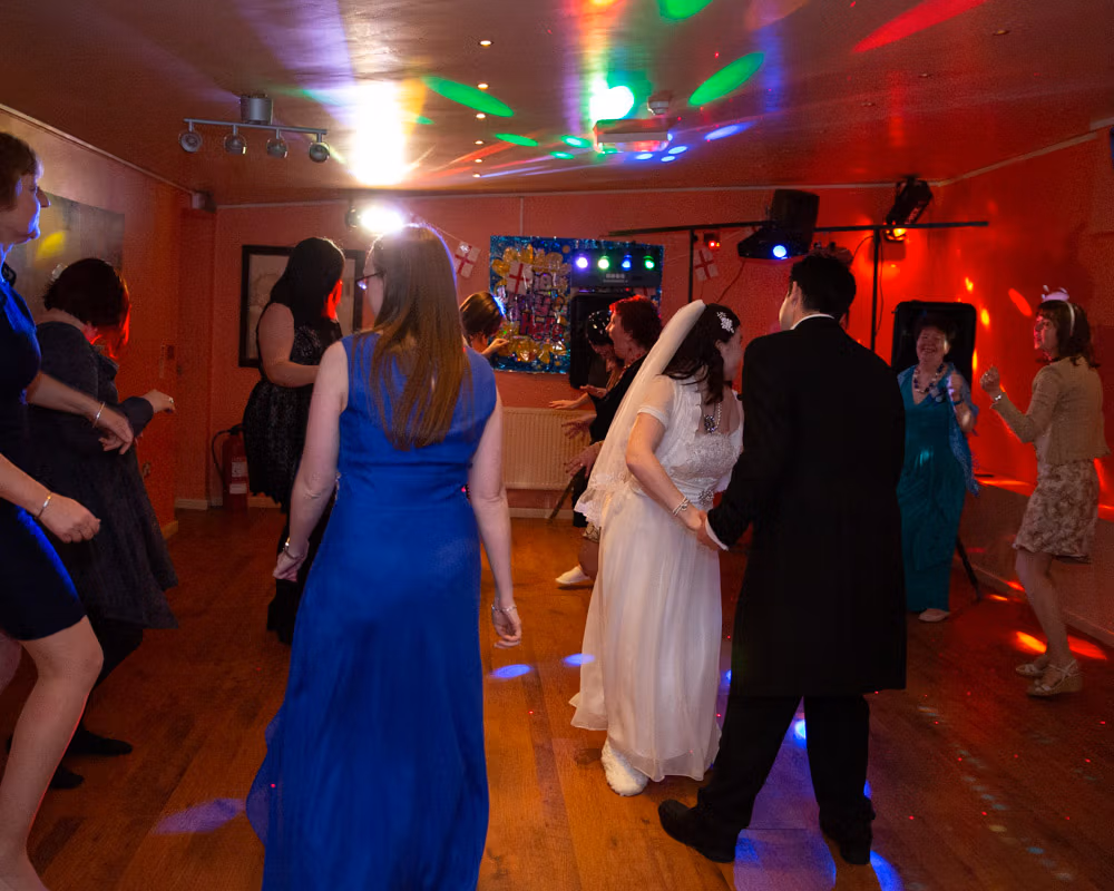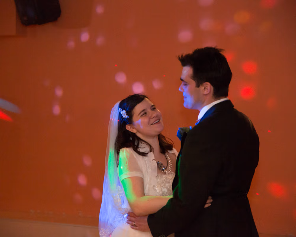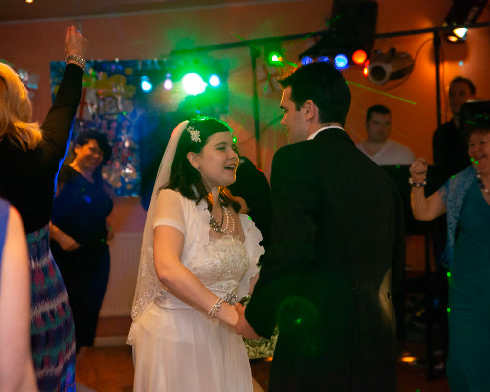 Then came the first dance. Claire and Tom stepped out onto the floor, surrounded by fairy lights and the warm blur of their guests. A quiet moment, a lovely sway, and then the dancefloor filled — shoes kicked off, drinks in hand, arms thrown around shoulders.