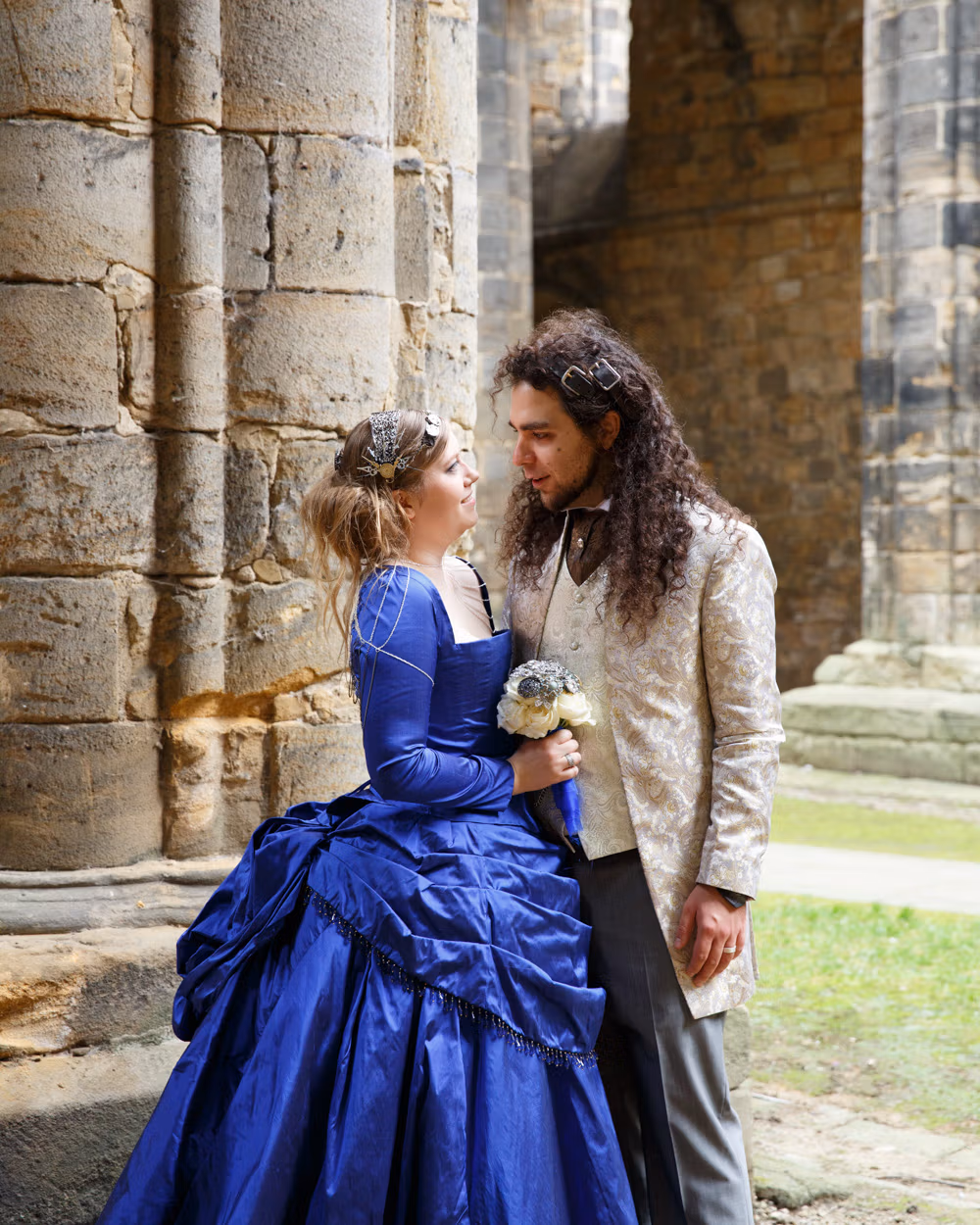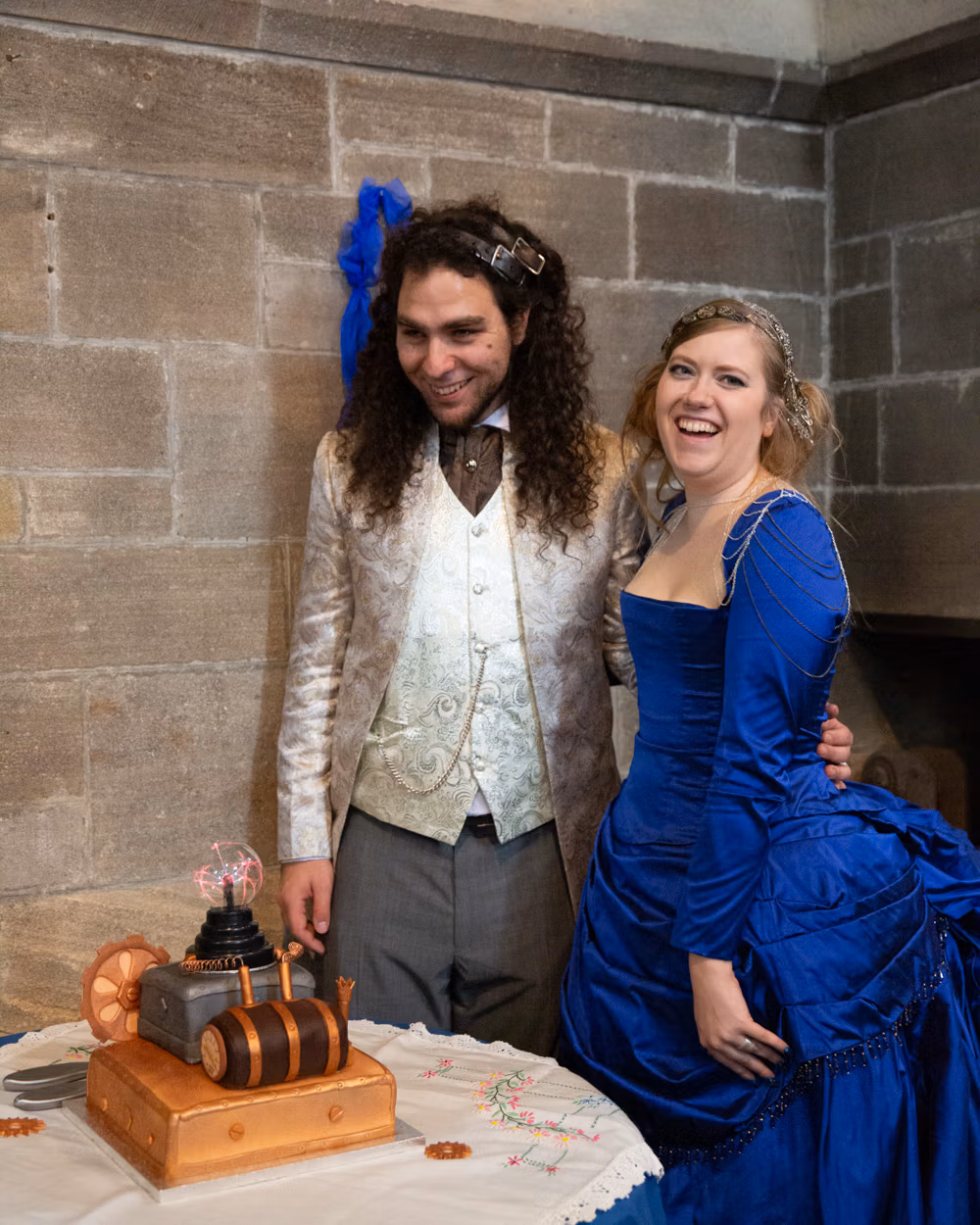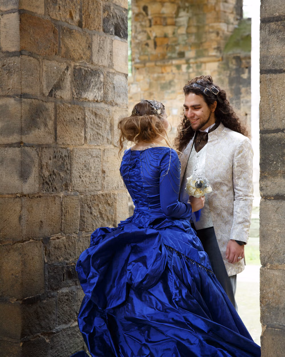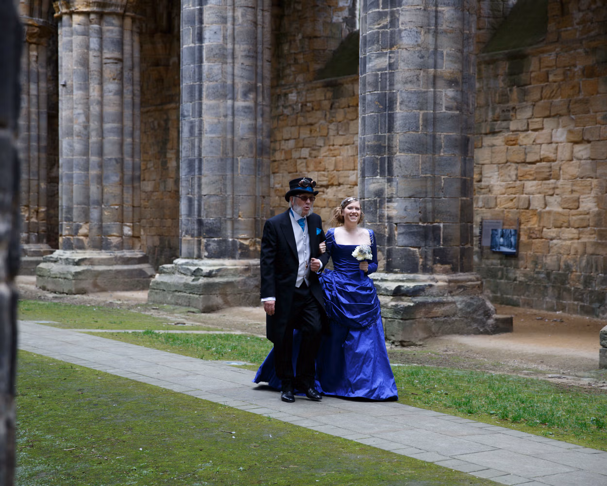 Linsey and Chris chose two striking Leeds wedding venues for their day — Kirkstall Abbey and Left Bank Leeds. Kirkstall Abbey sits just a short walk from home for me, while Left Bank Leeds, a deconsecrated church on Cardigan Lane, became the setting for their evening celebration. I hadn’t encountered a steampunk wedding before this one, but from the moment I arrived and began photographing the colour, detail, and personality, it was clear this was going to be one of the most enjoyable weddings I’d documented.
