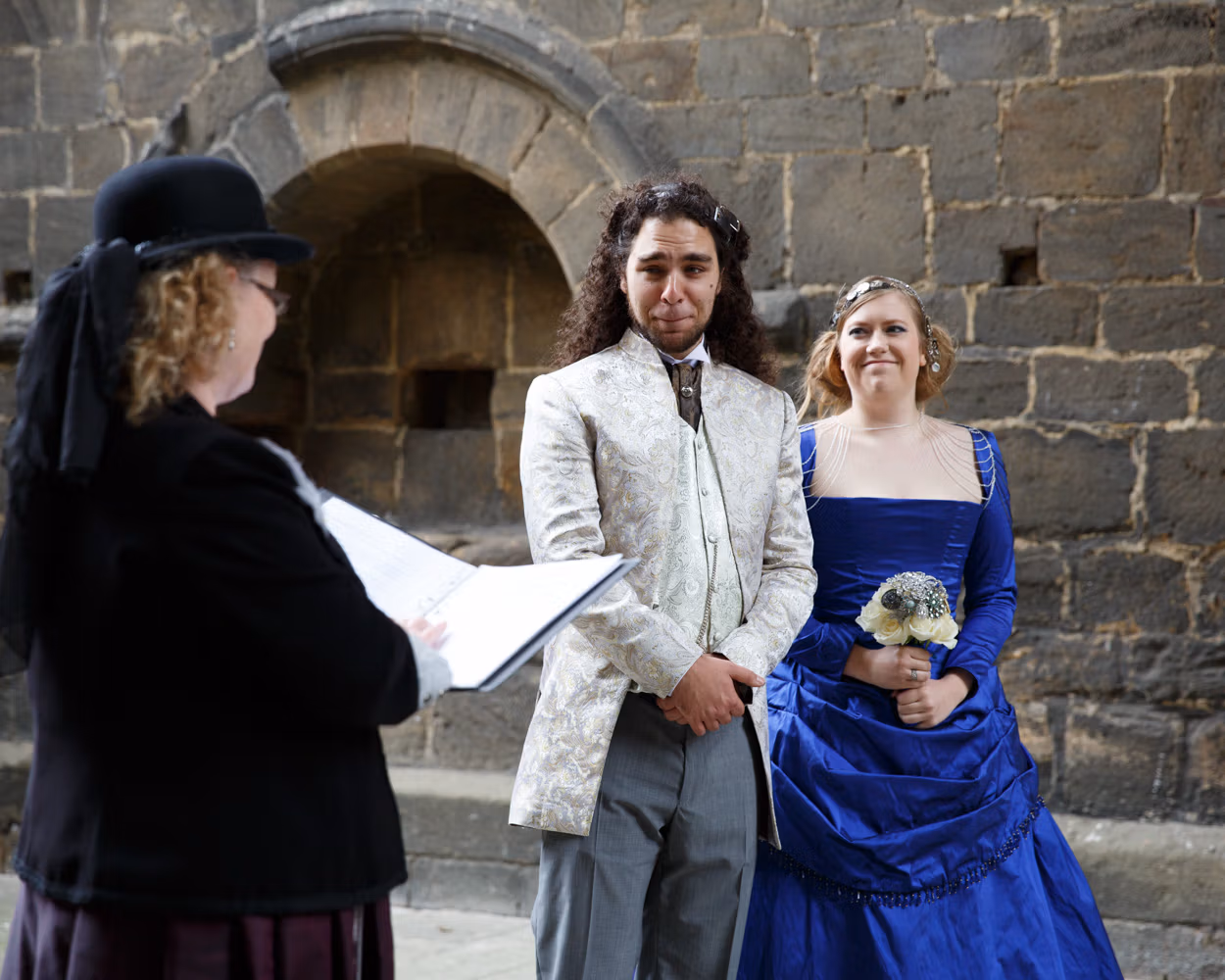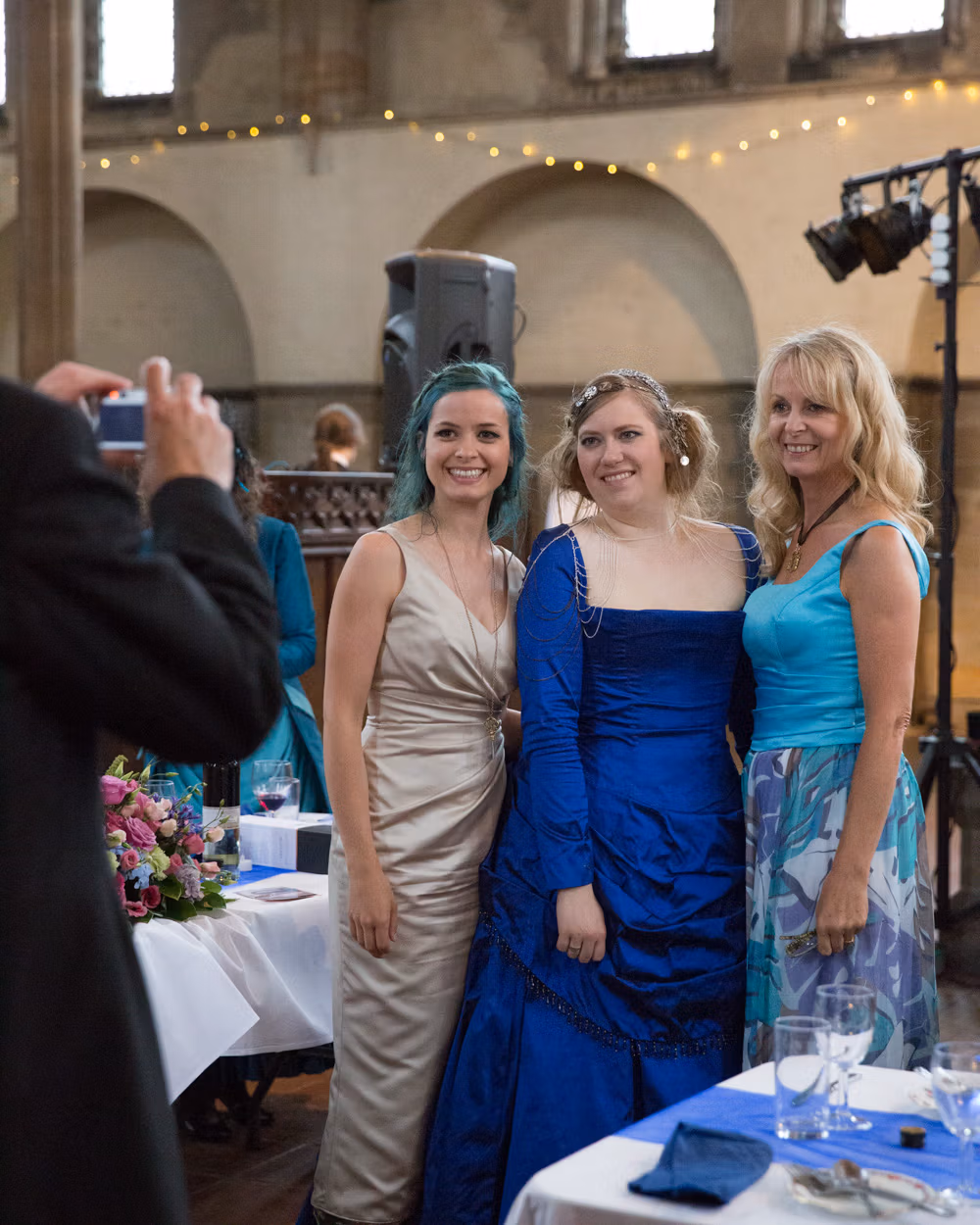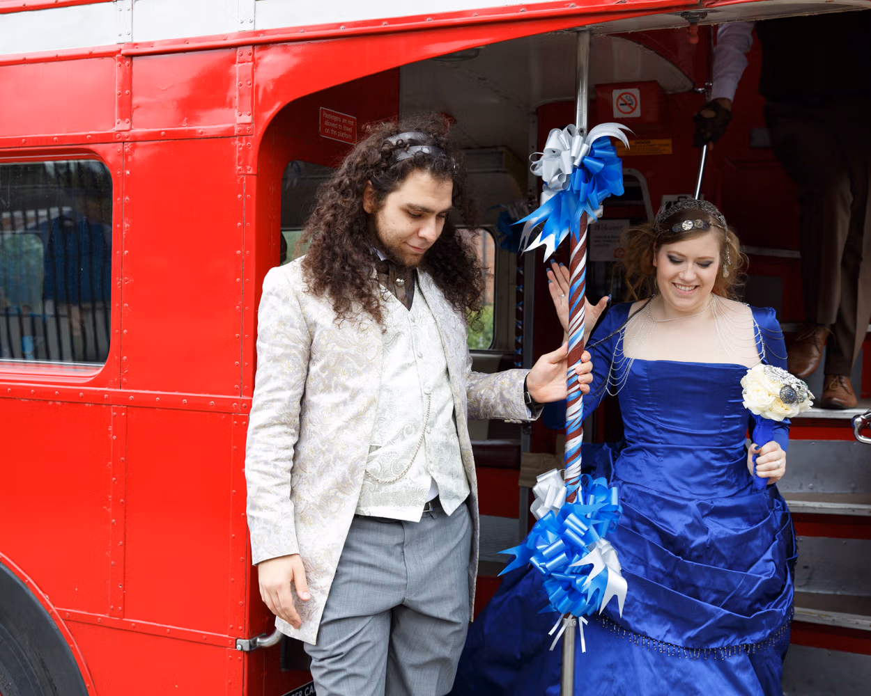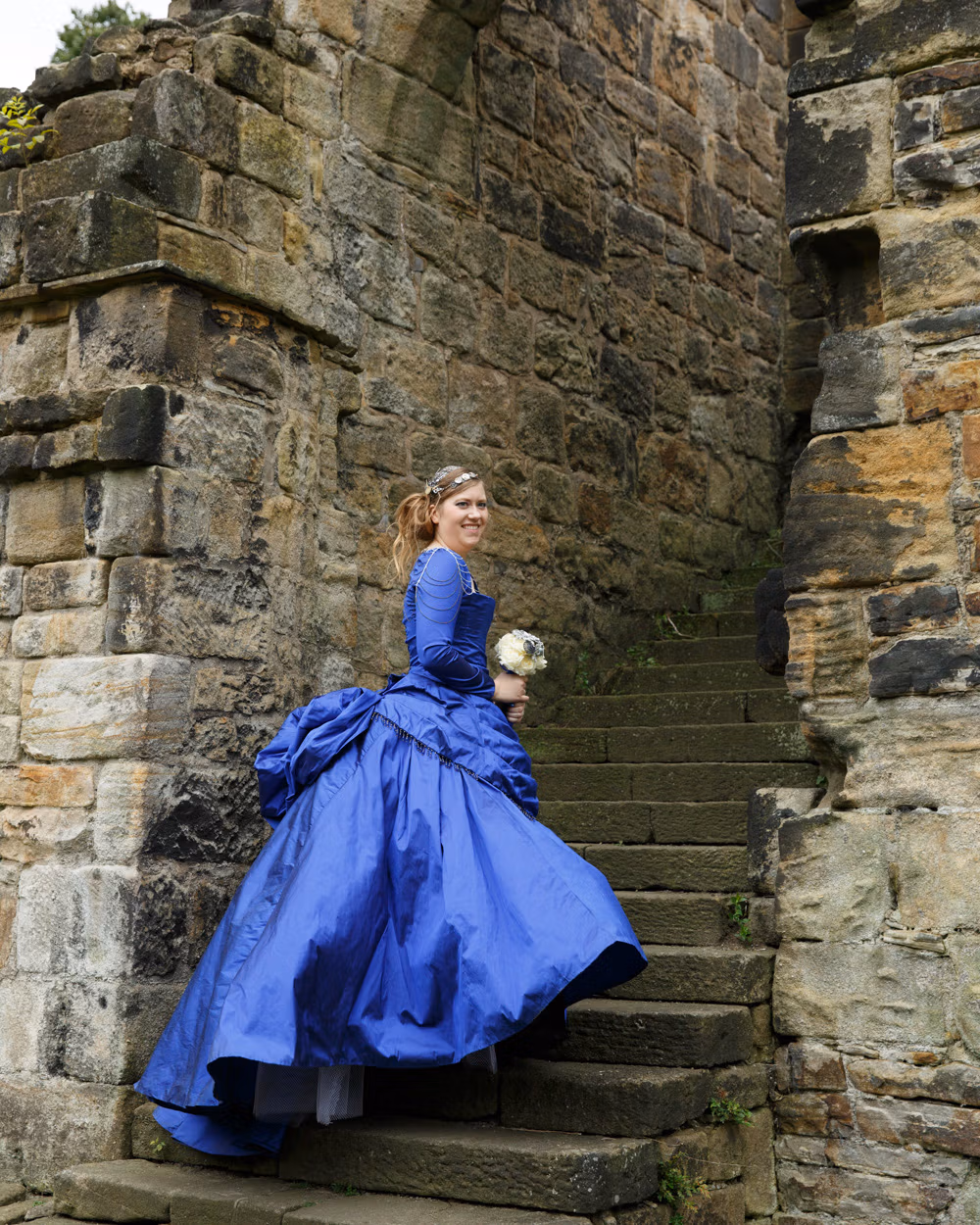 Linsey and Chris chose two striking Leeds wedding venues for their day — Kirkstall Abbey and Left Bank Leeds. Kirkstall Abbey sits just a short walk from home for me, while Left Bank Leeds, a deconsecrated church on Cardigan Lane, became the setting for their evening celebration. I hadn’t encountered a steampunk wedding before this one, but from the moment I arrived and began photographing the colour, detail, and personality, it was clear this was going to be one of the most enjoyable weddings I’d documented.