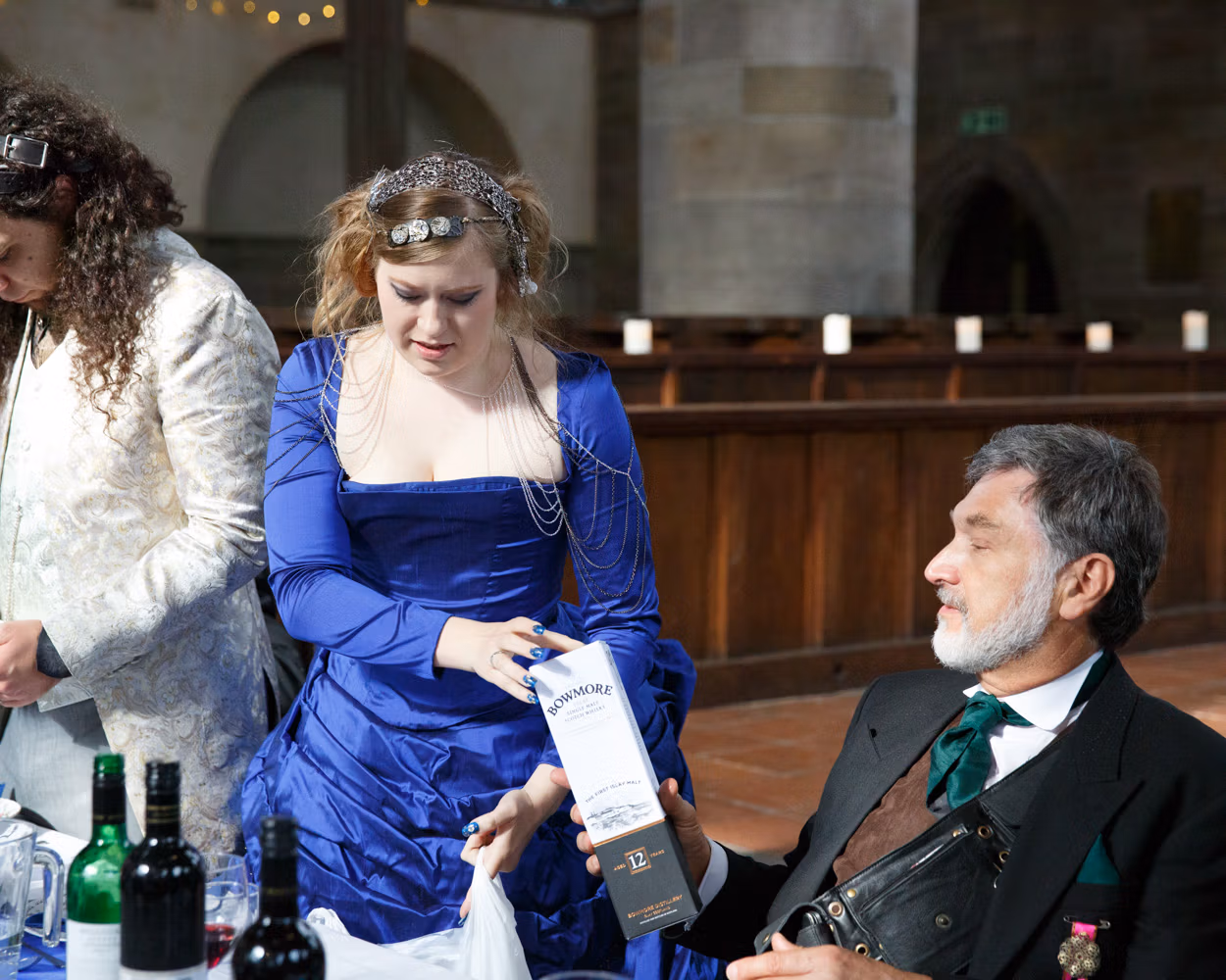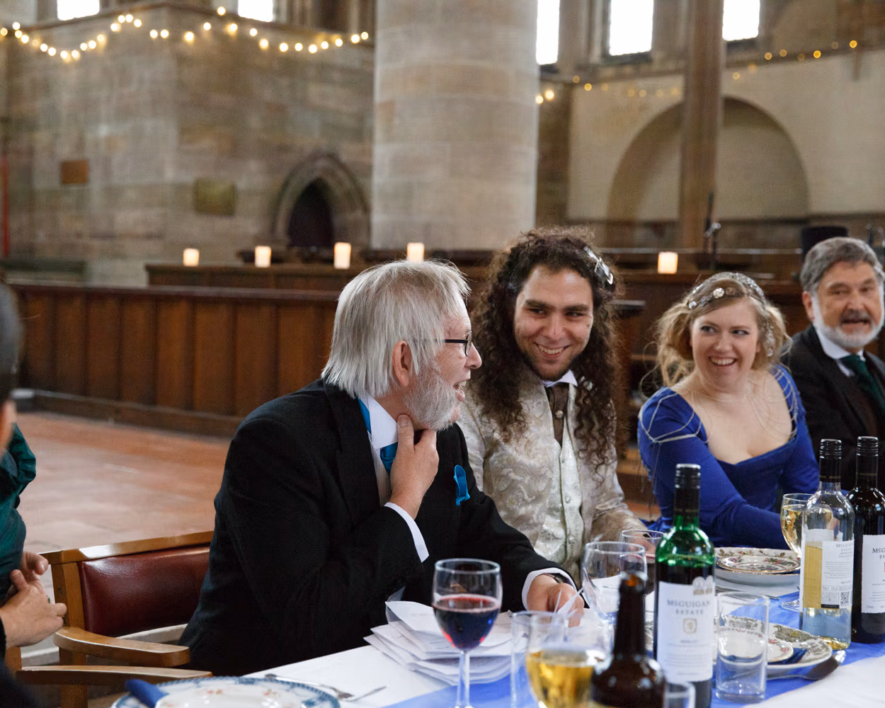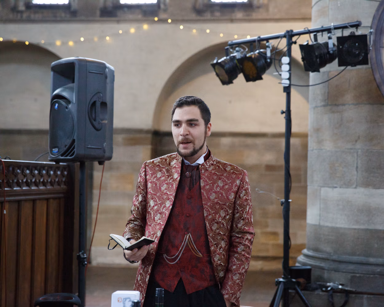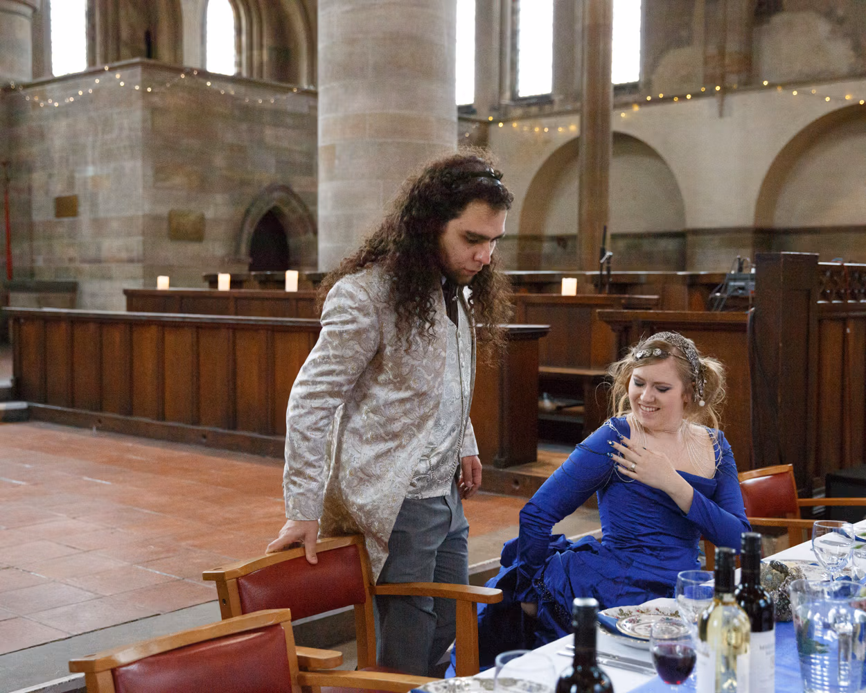 Linsey and Chris chose two striking Leeds wedding venues for their day — Kirkstall Abbey and Left Bank Leeds. Kirkstall Abbey sits just a short walk from home for me, while Left Bank Leeds, a deconsecrated church on Cardigan Lane, became the setting for their evening celebration. I hadn’t encountered a steampunk wedding before this one, but from the moment I arrived and began photographing the colour, detail, and personality, it was clear this was going to be one of the most enjoyable weddings I’d documented.