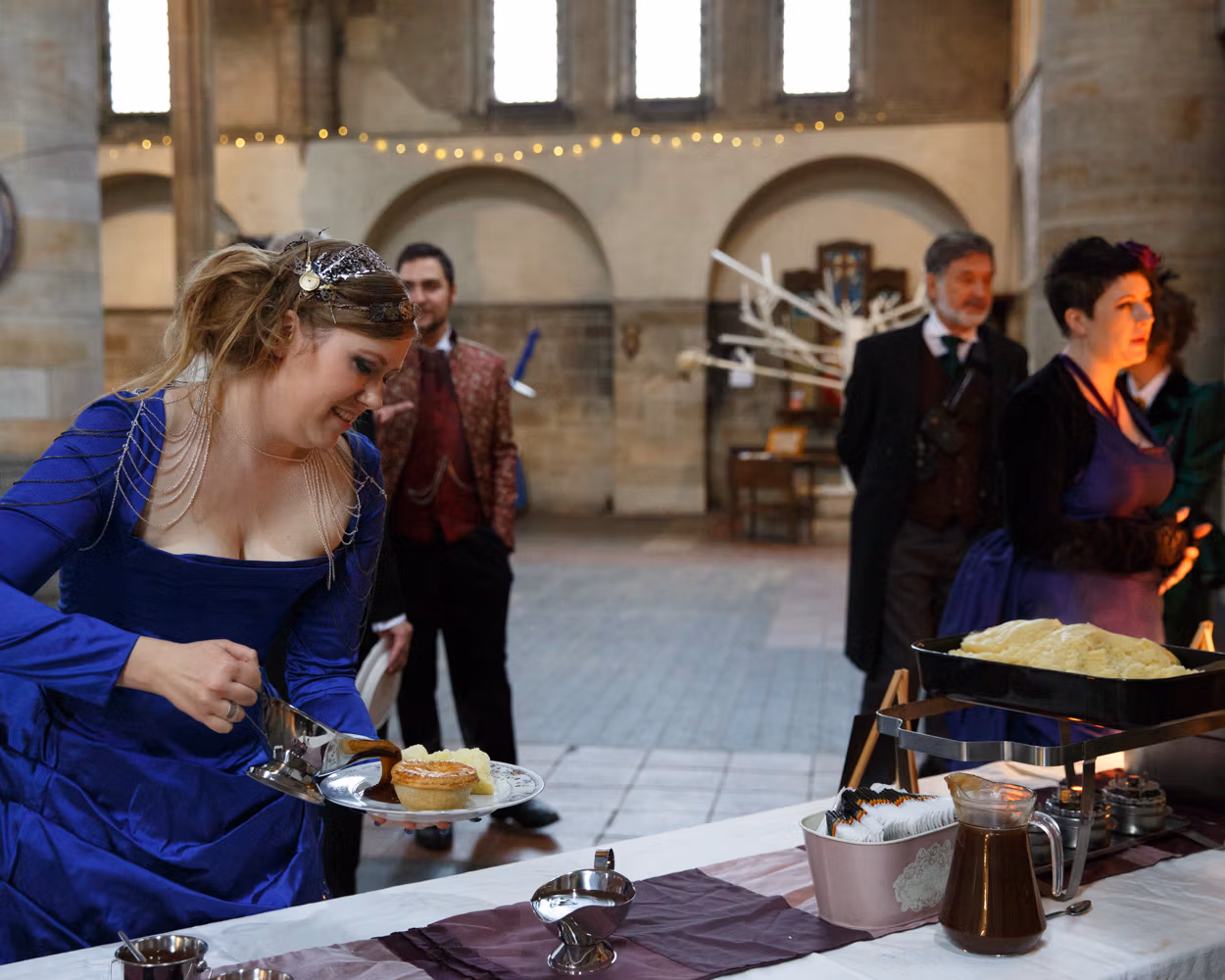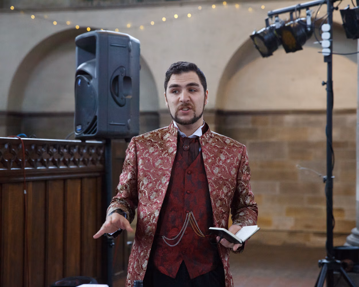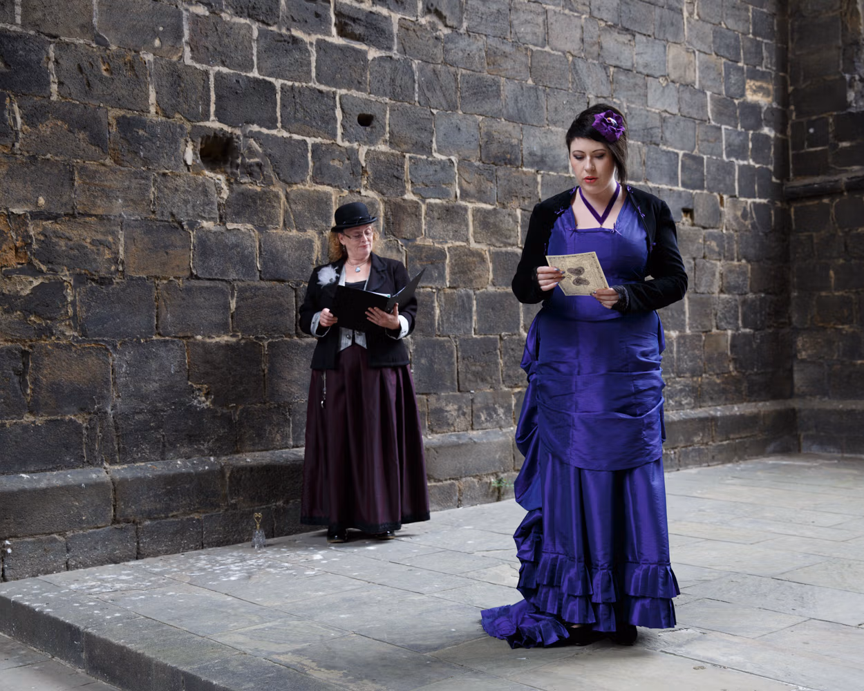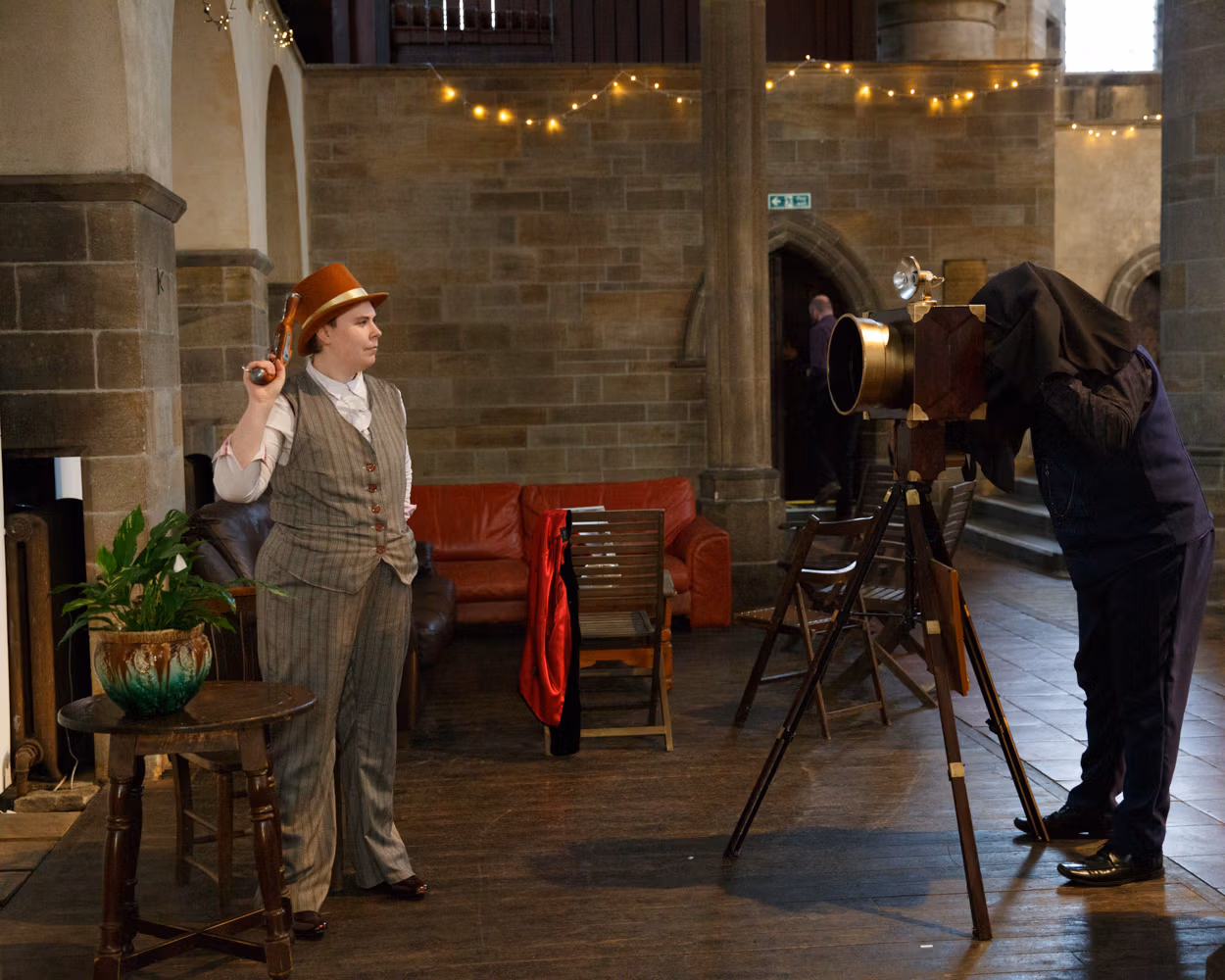 Linsey and Chris chose two striking Leeds wedding venues for their day — Kirkstall Abbey and Left Bank Leeds. Kirkstall Abbey sits just a short walk from home for me, while Left Bank Leeds, a deconsecrated church on Cardigan Lane, became the setting for their evening celebration. I hadn’t encountered a steampunk wedding before this one, but from the moment I arrived and began photographing the colour, detail, and personality, it was clear this was going to be one of the most enjoyable weddings I’d documented.