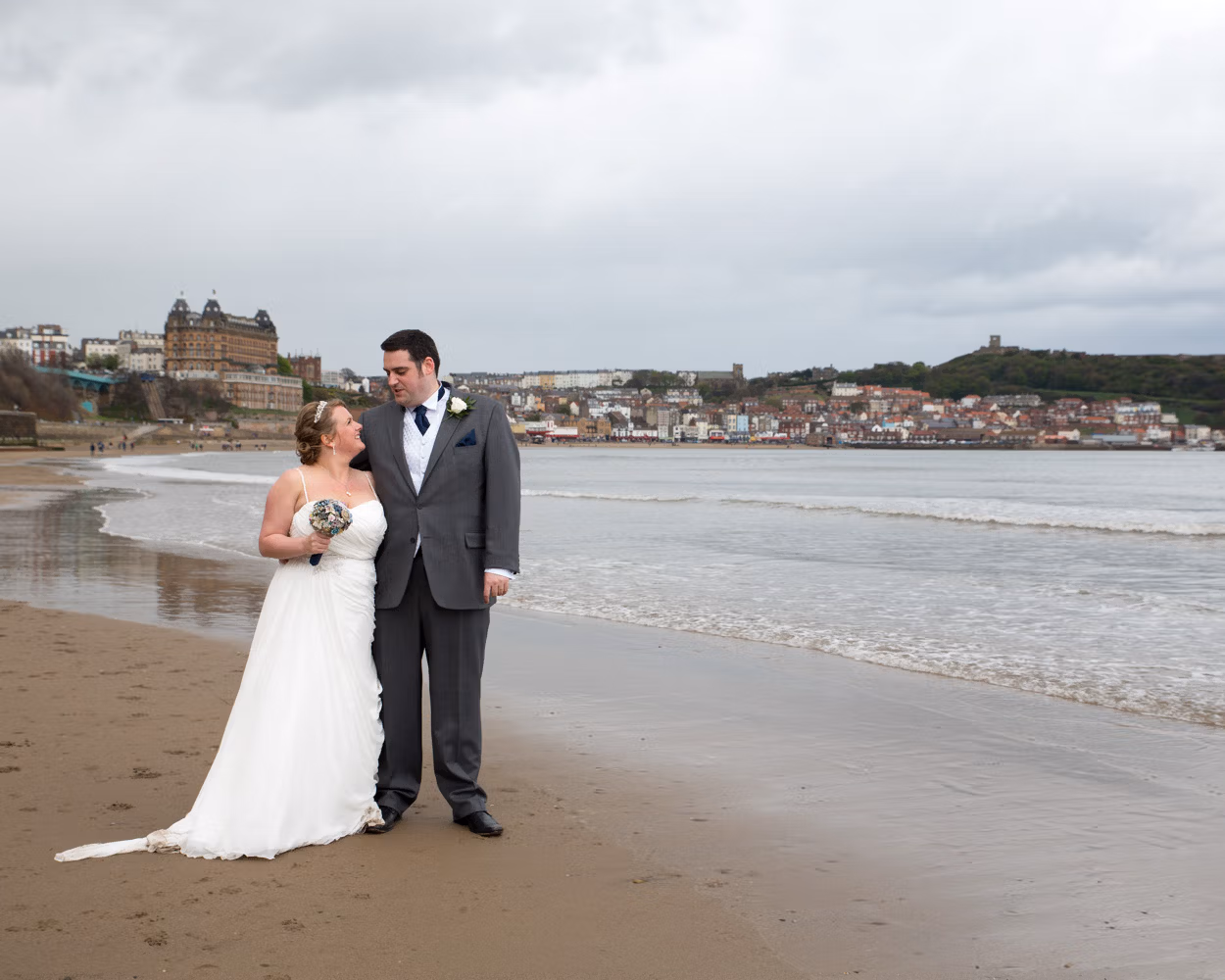 This wedding took place across the promenade, pavilion, and shoreline at Scarborough Spa, with portraits made along the coast and celebrations continuing indoors.
