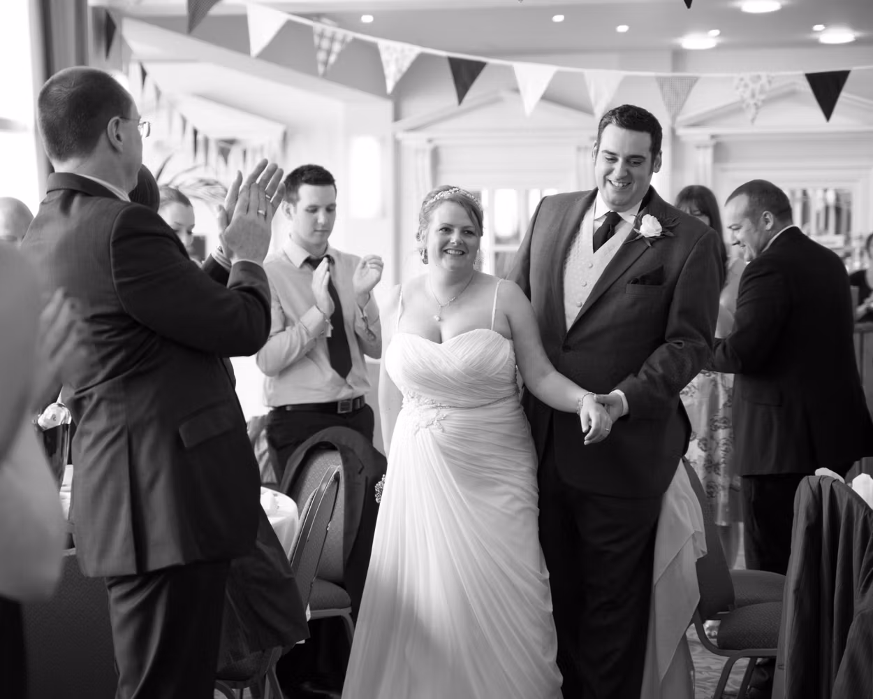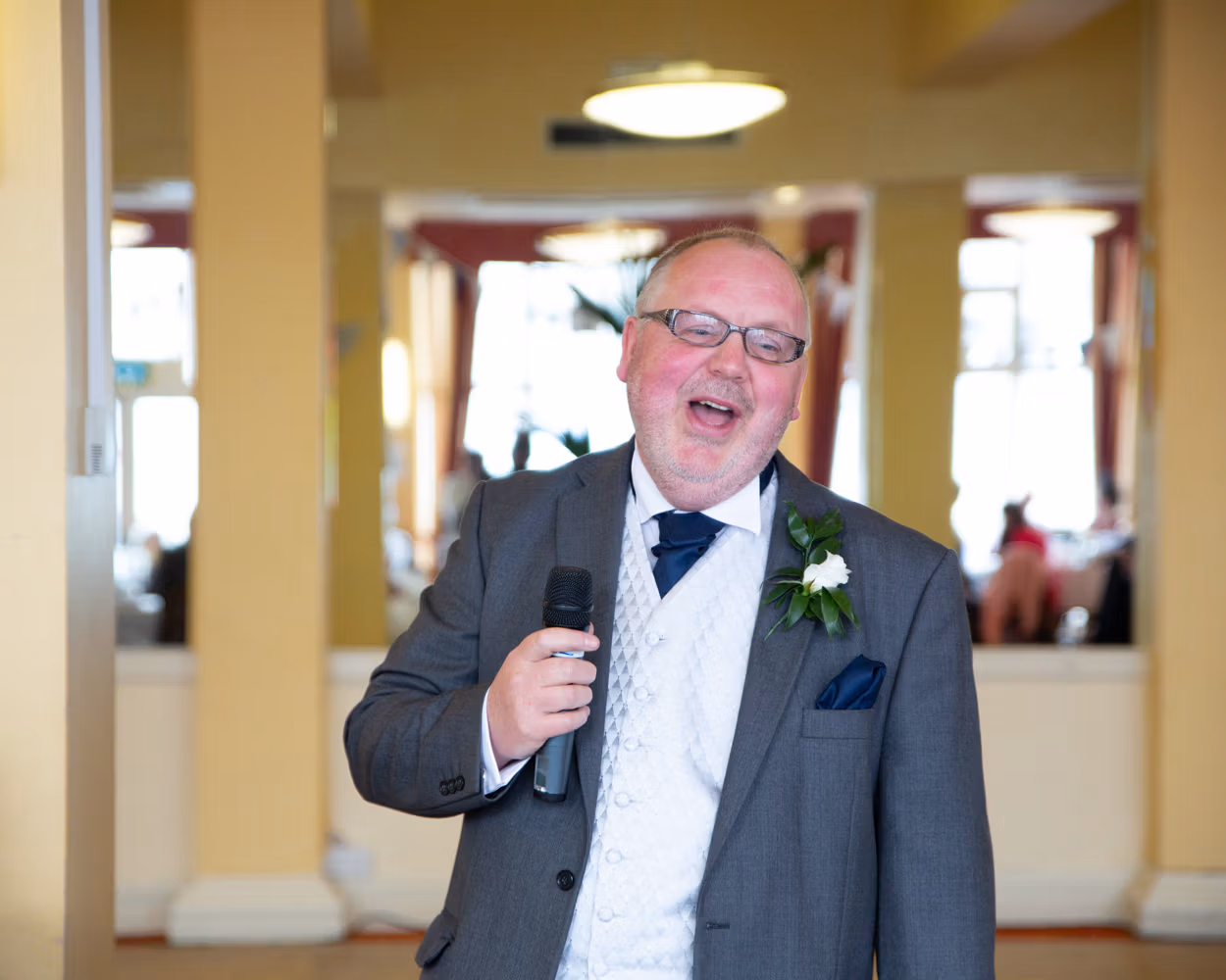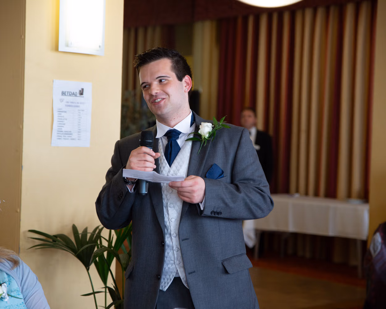 Lisa and Oliver entered to warm applause and smiling faces — the kind of welcome that instantly softens any nerves. Speeches came before the food, often a brave move, but here it worked perfectly. Laughter settled the room, emotions landed gently, and no one seemed to mind the wait.