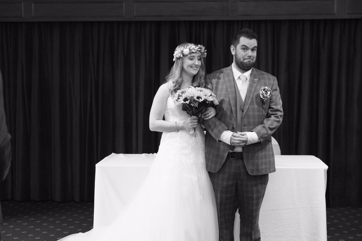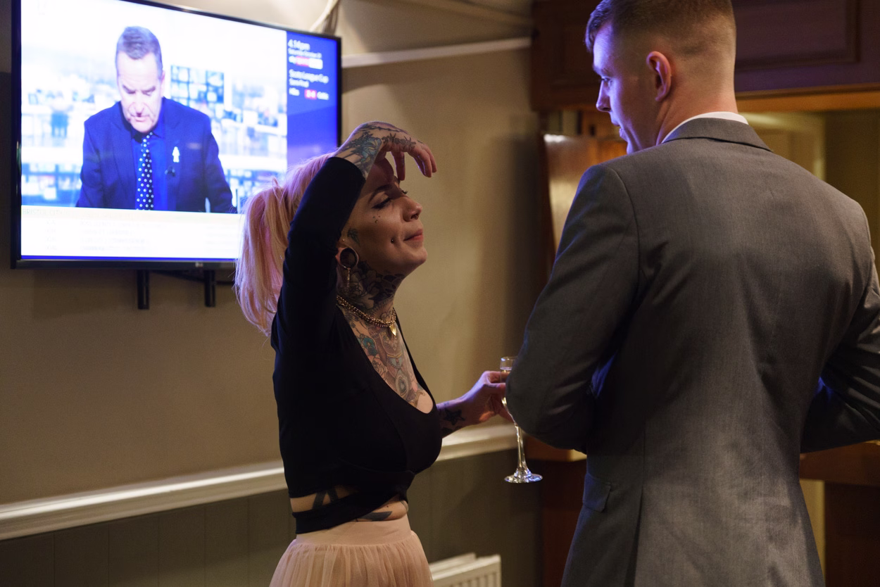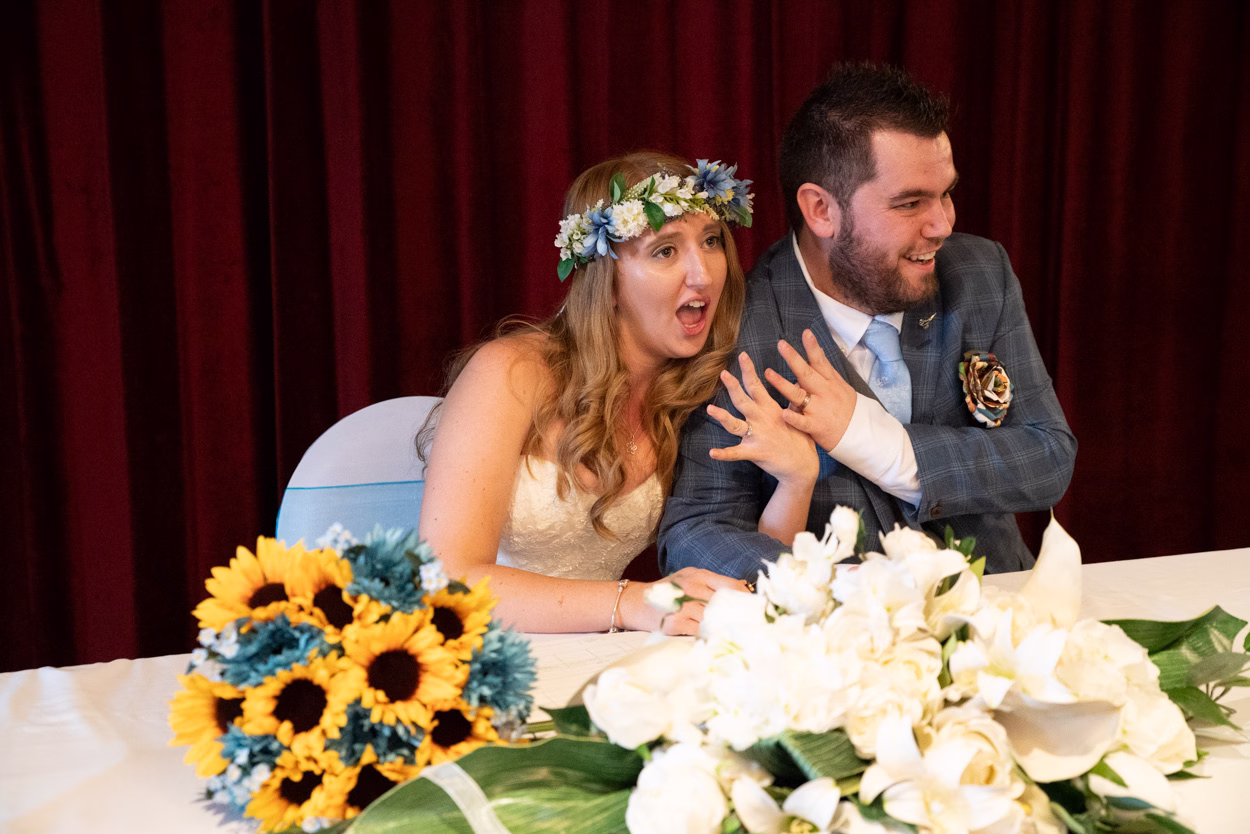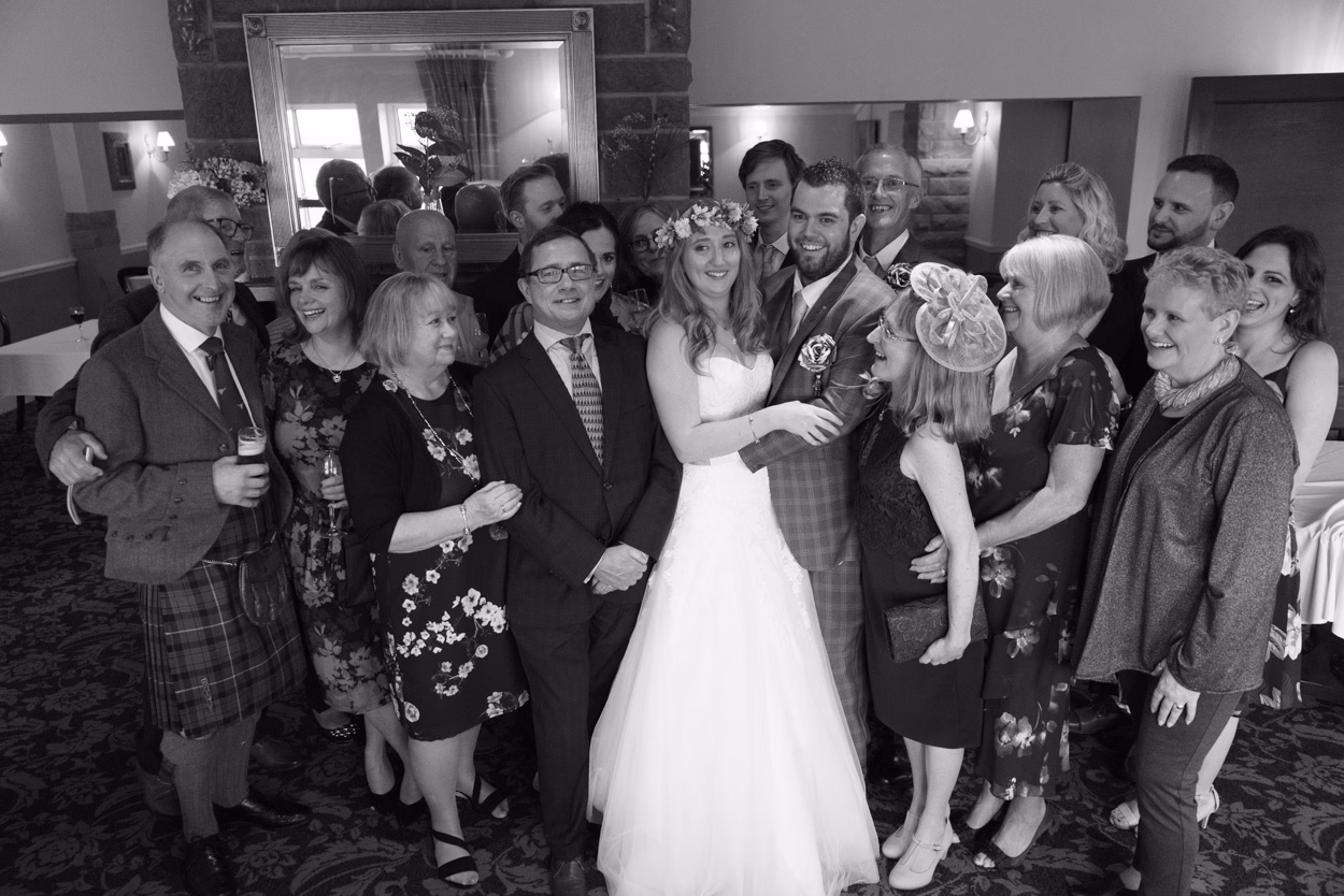 Julia and Scott were absolute stars on their October wedding at Pennine Manor Hotel in Huddersfield. The wind was wild, yet the couple—and all their guests—bravely ventured onto the helipad for the planned group photo. Hats off to everyone for embracing the gusts!