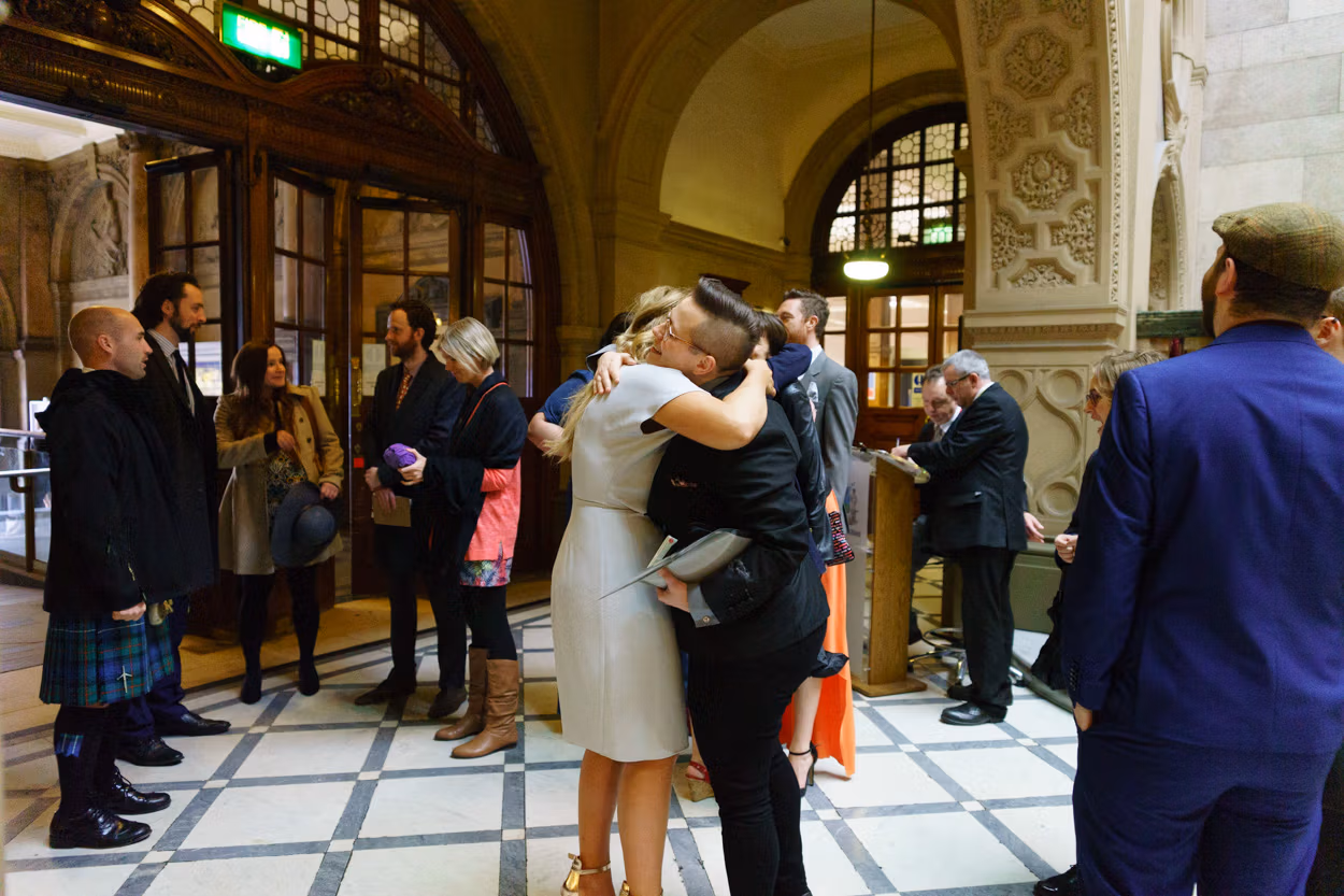 A striking civic building in the heart of the city, known for its ornate interiors and sense of occasion. Its grand spaces offered a calm, dignified setting for Lizzie and Tamara’s ceremony.
