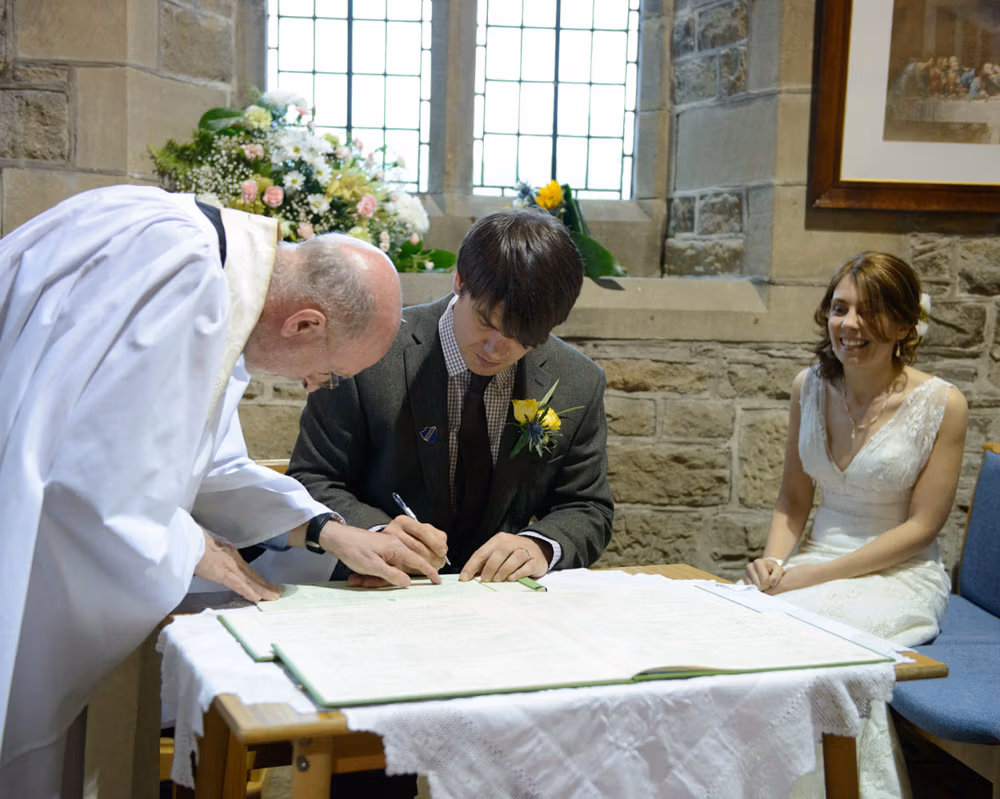 Susie and Dan’s late May wedding had everything — a beautiful church ceremony at St Michael and All Angels in Foulridge, a countryside backdrop for portraits, and a lively reception at Barley Village Hall.