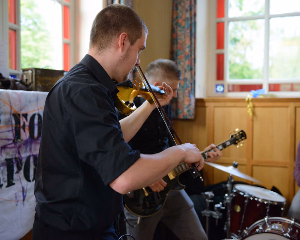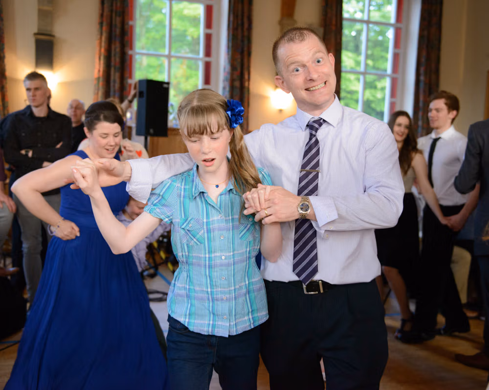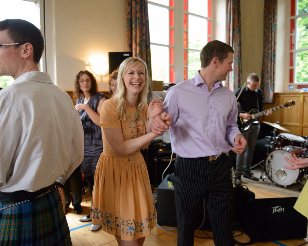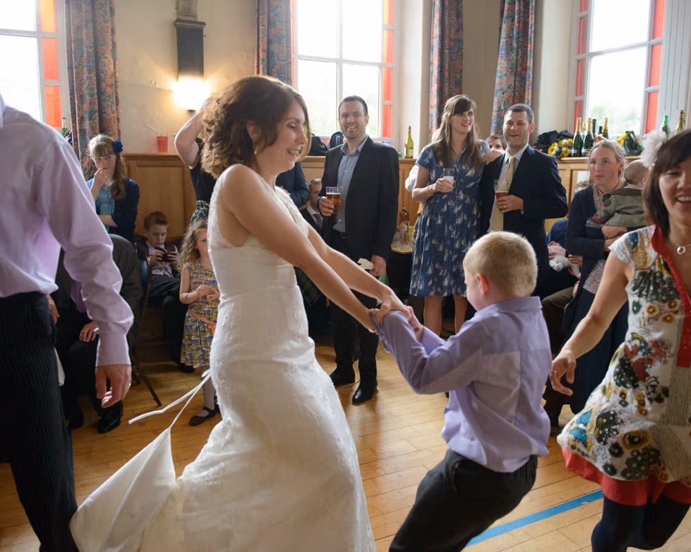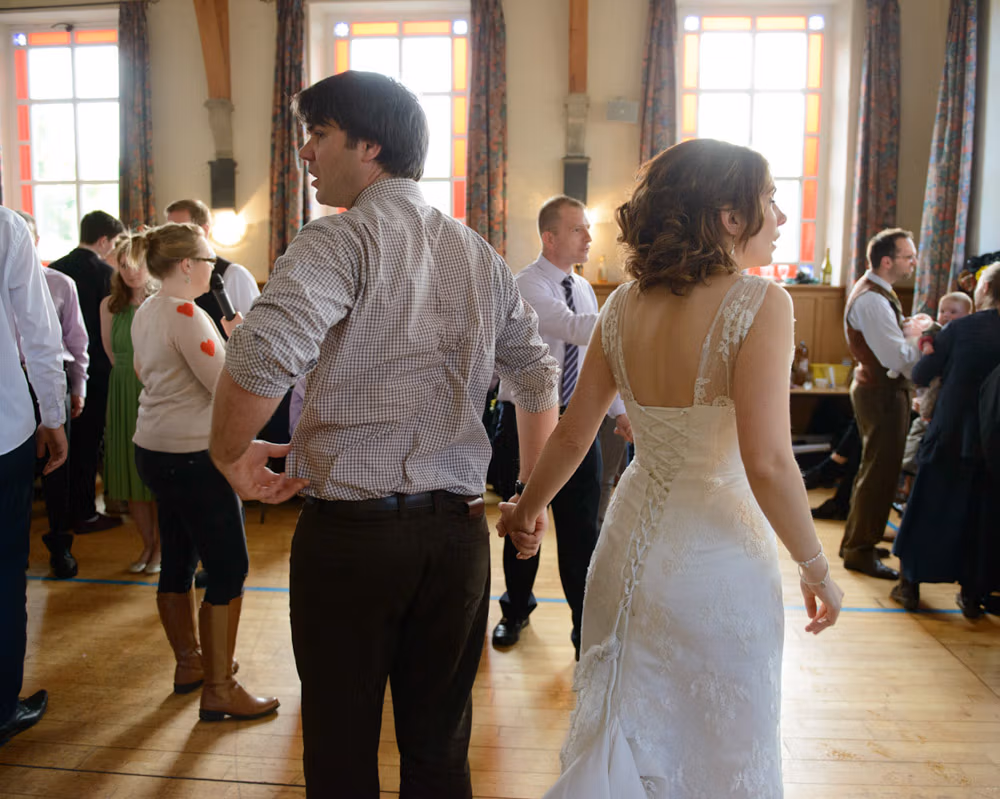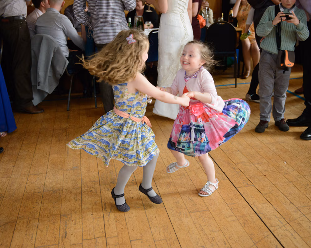 The rain didn’t stop a thing. These two stuck to their plans, braving the Lancashire fields with big smiles and plenty of laughter. By the evening, the hall was filled with music and ceilidh dancing — the kind of night where no one wants to leave the dance floor.
