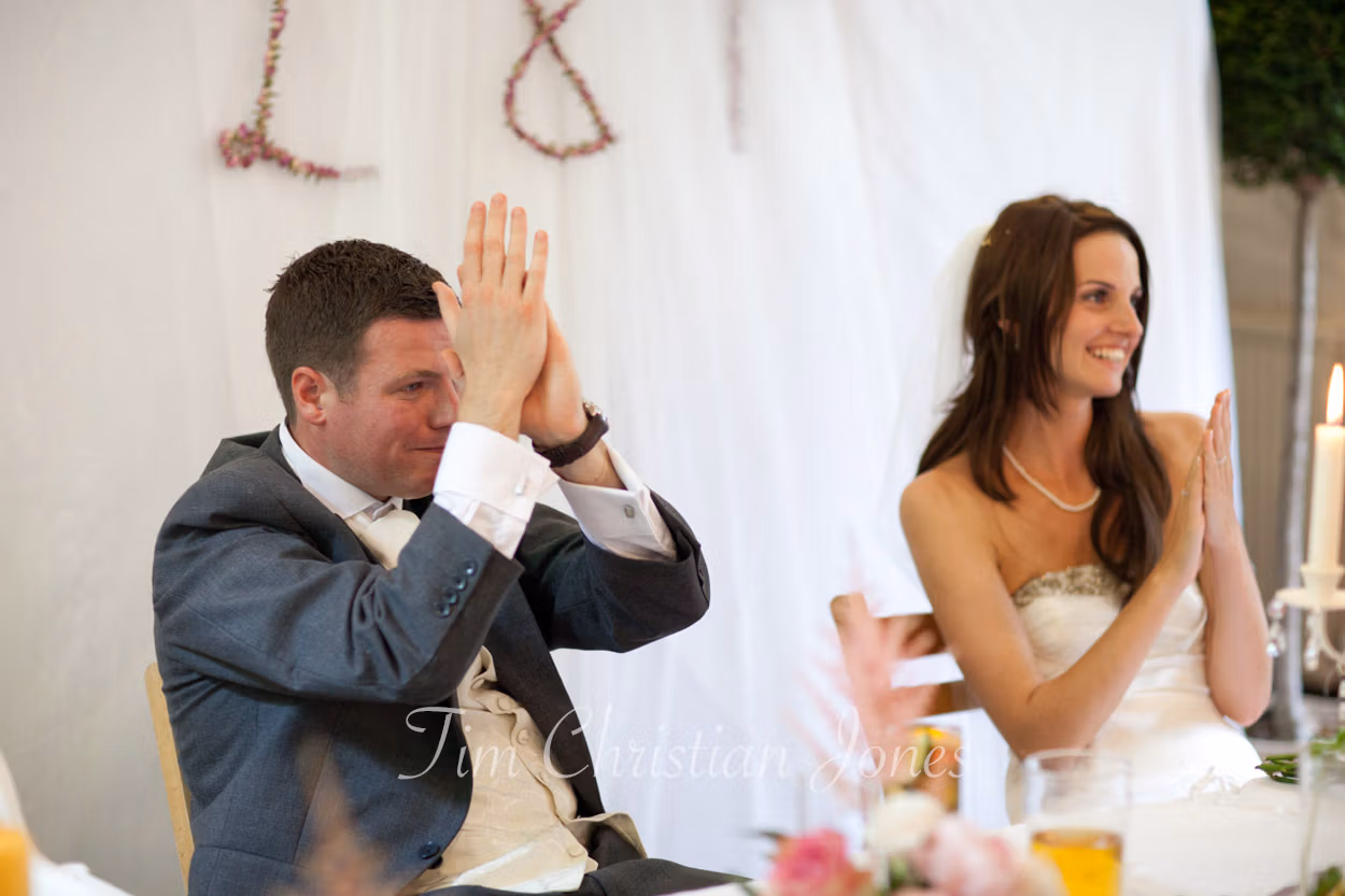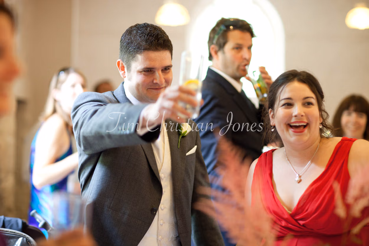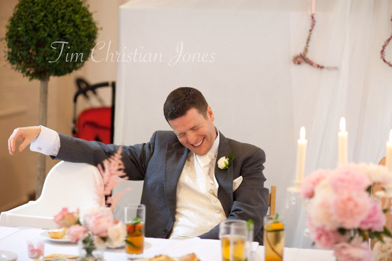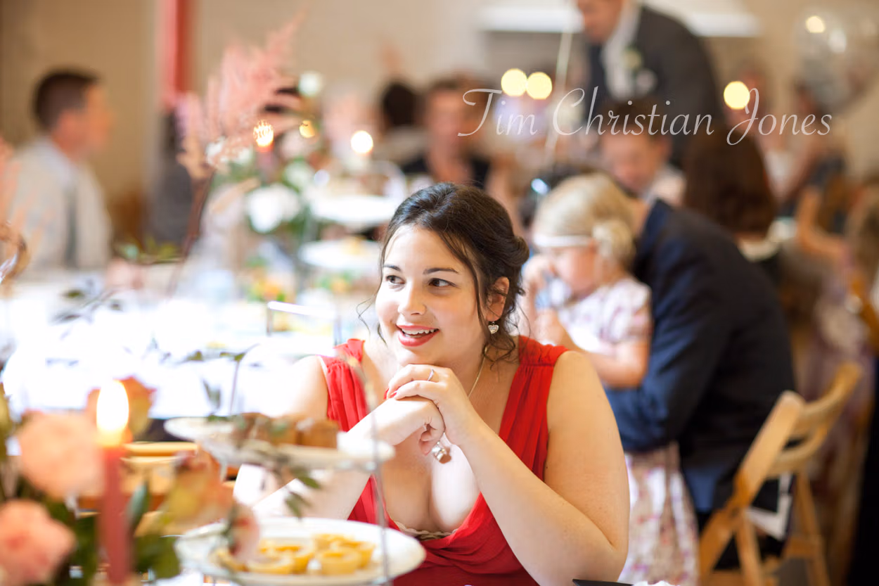 The wedding breakfast was a charming afternoon tea, complete with fruit scones, cream and jam, and simple rose vases on the tables. Lowri and Tim entered to warm applause, and I did what I love most — capturing the fun, the emotion, and the joy as it naturally unfolded.