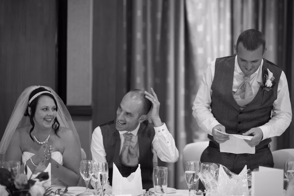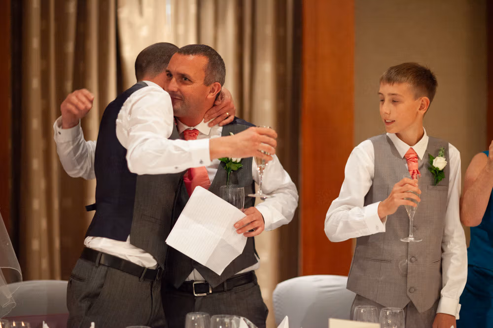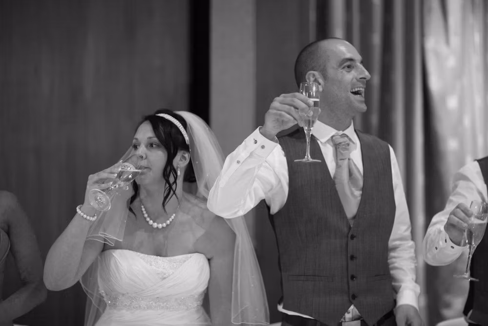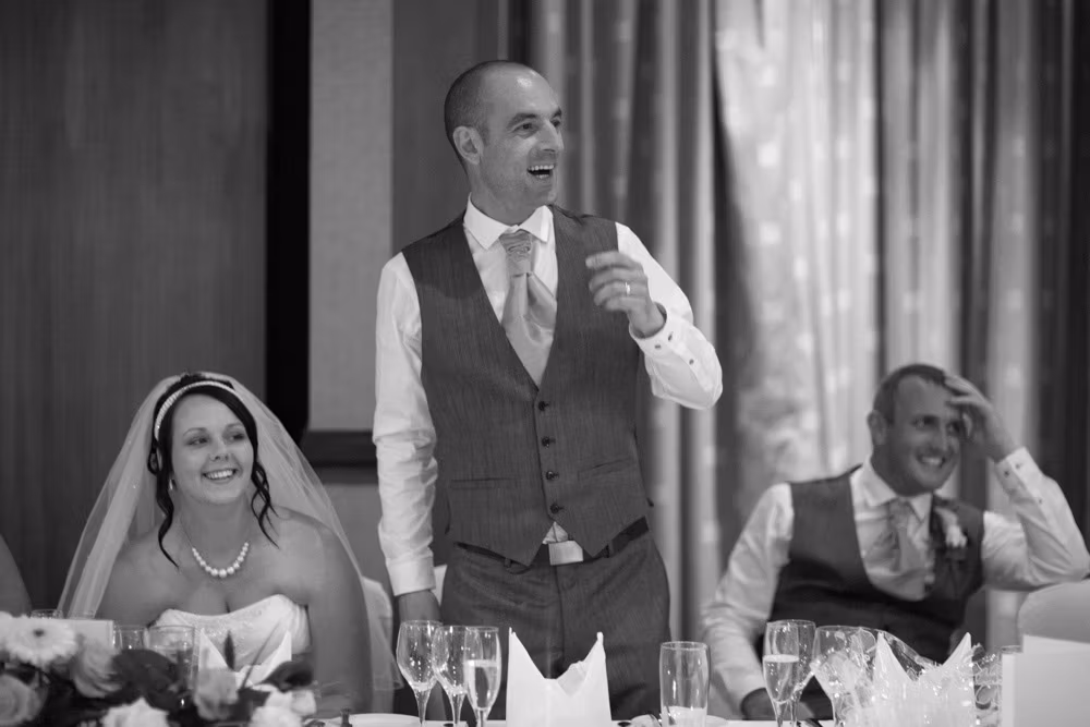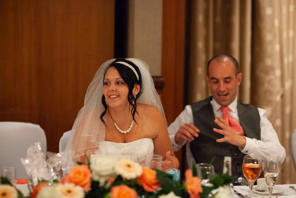 Gemma & Dave’s entrance was full of celebration, greeted with clapping and cheers before the speeches began. The father of the bride raised the first toast, followed by heartfelt words from Dave and plenty of fun from the best man.