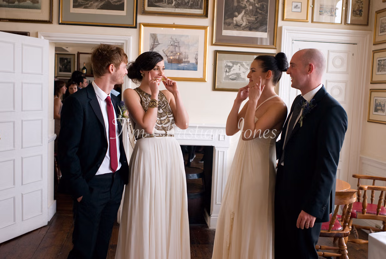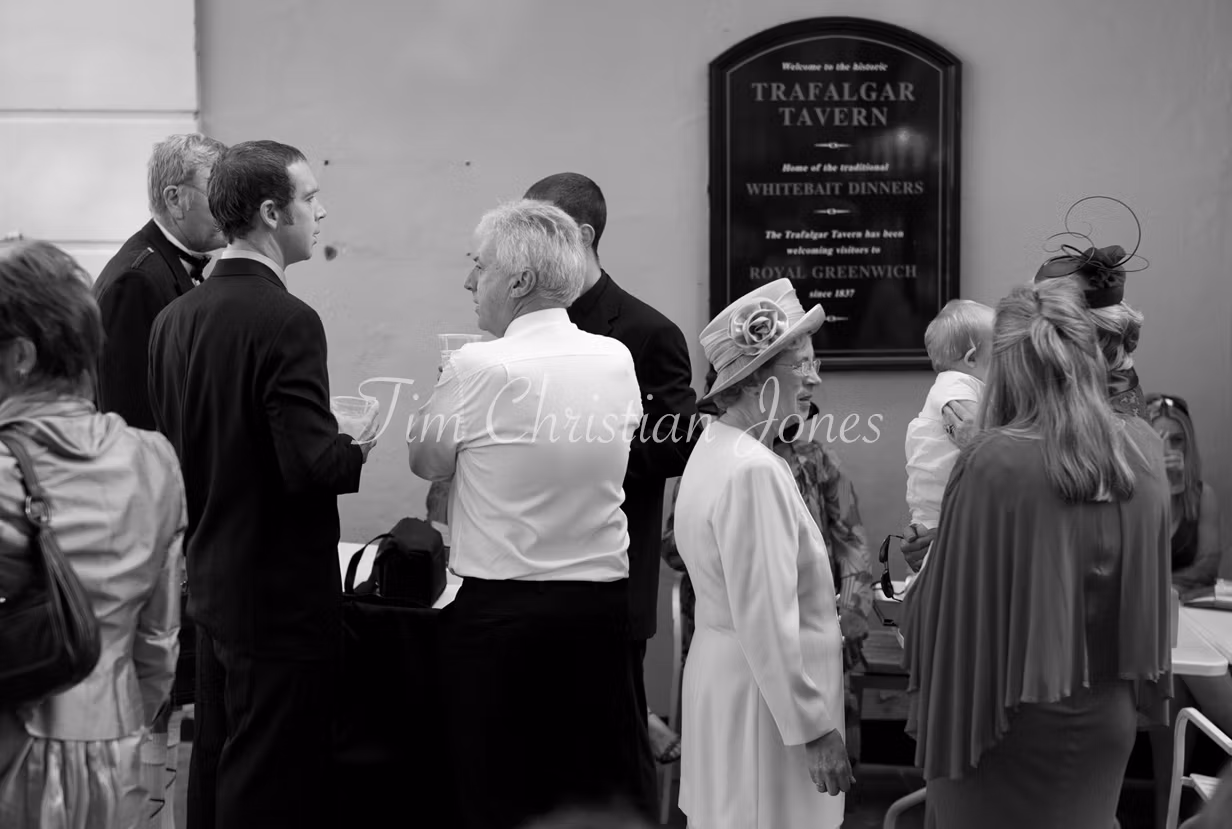 The Trafalgar Tavern’s riverside charm framed the morning beautifully — soft October light spilling through tall windows, the air filled with conversation and warmth. Guests gathered by the Thames, laughter rising above the tide. Inside, a calm anticipation grew as Jamie waited, the murmur of voices and gentle piano notes carrying through the room.