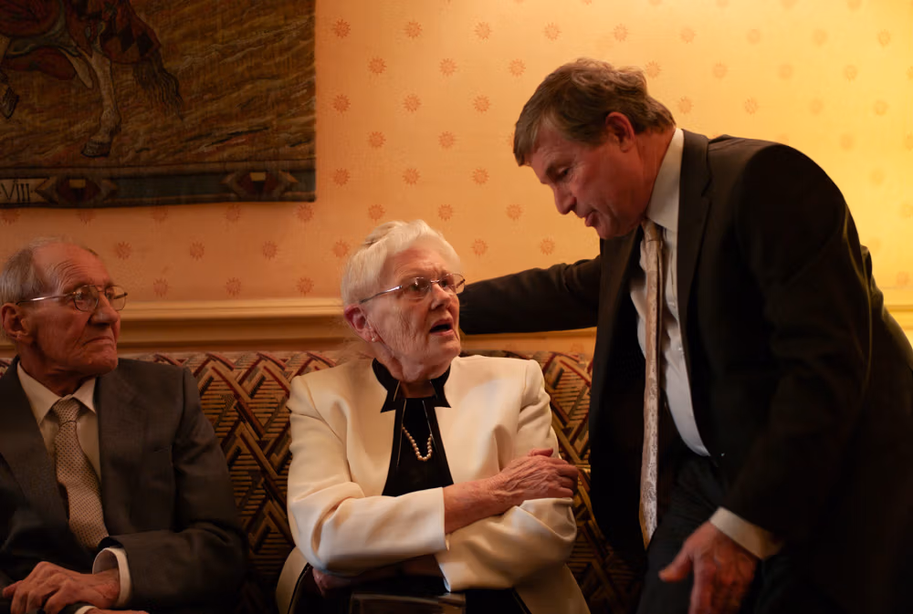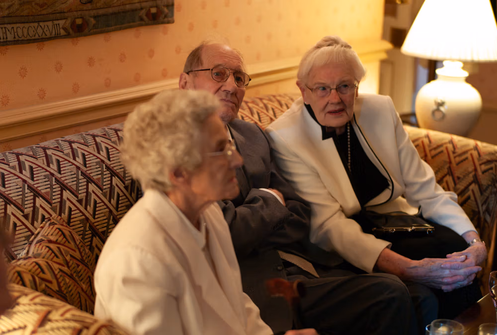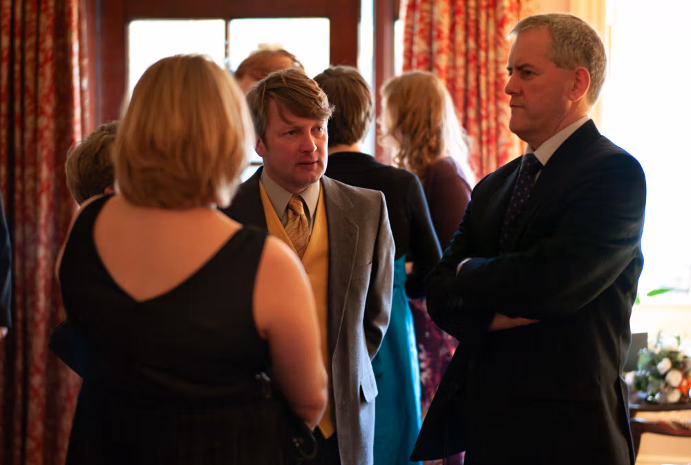 Inside St George’s, the ceremony carried a balance of tradition and warmth. Catherine and Philip shared smiles during hymns, exchanged rings, and sealed their vows with a gentle kiss. Their families watched with joy, the grand interior framing every detail — from stained glass to the music that lifted through the church.