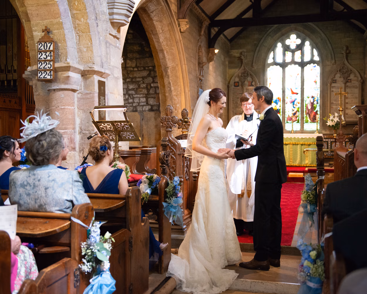 A traditional village church just outside Wetherby, offering a peaceful setting for a heartfelt ceremony surrounded by countryside and close-knit community.