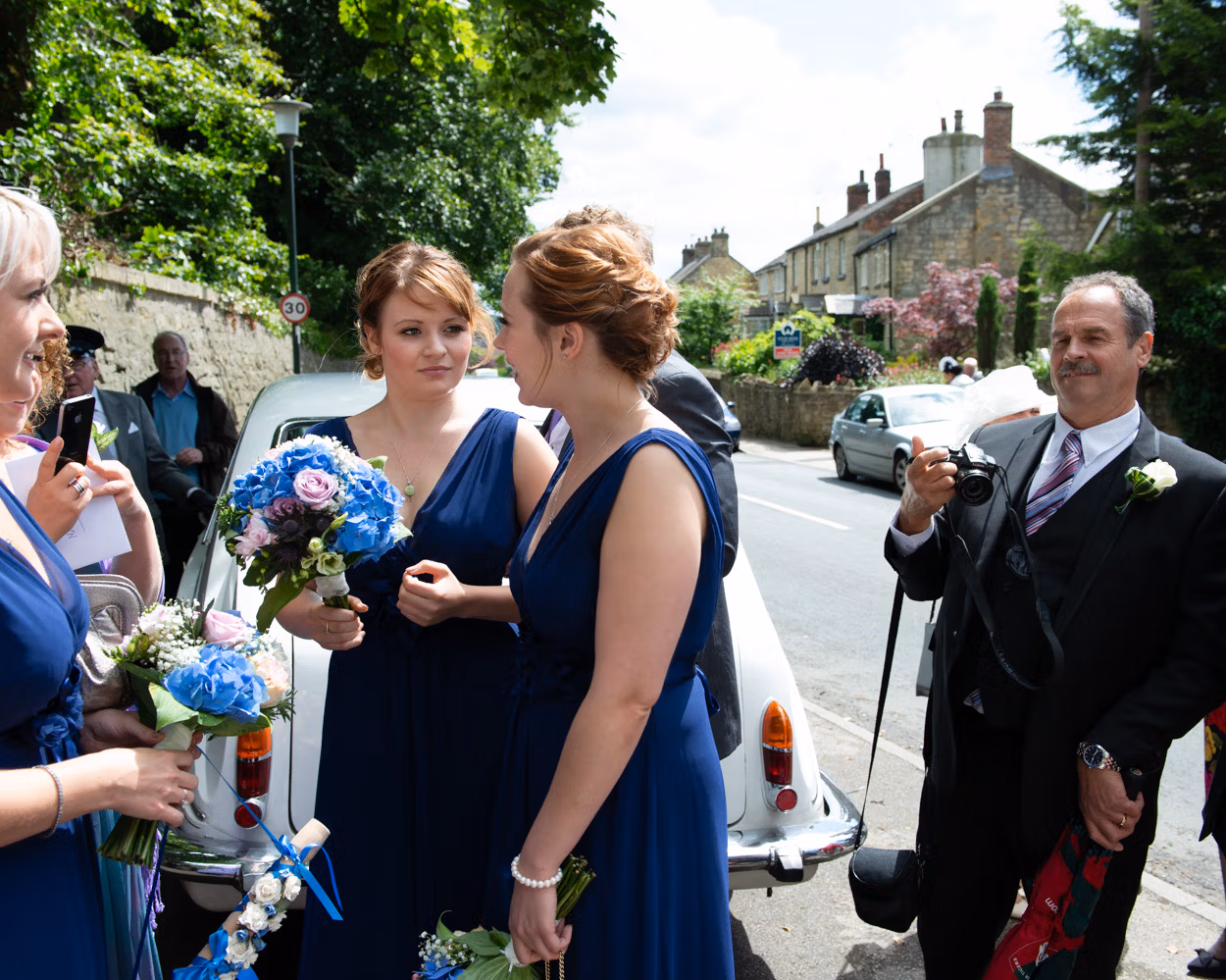 Family and friends gathered on the steps. Group photos requested and happily taken. Laughter between frames. The weather kind once again on this late summer day in West Yorkshire.
