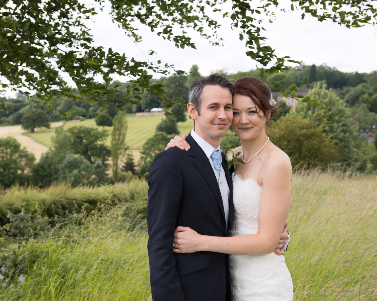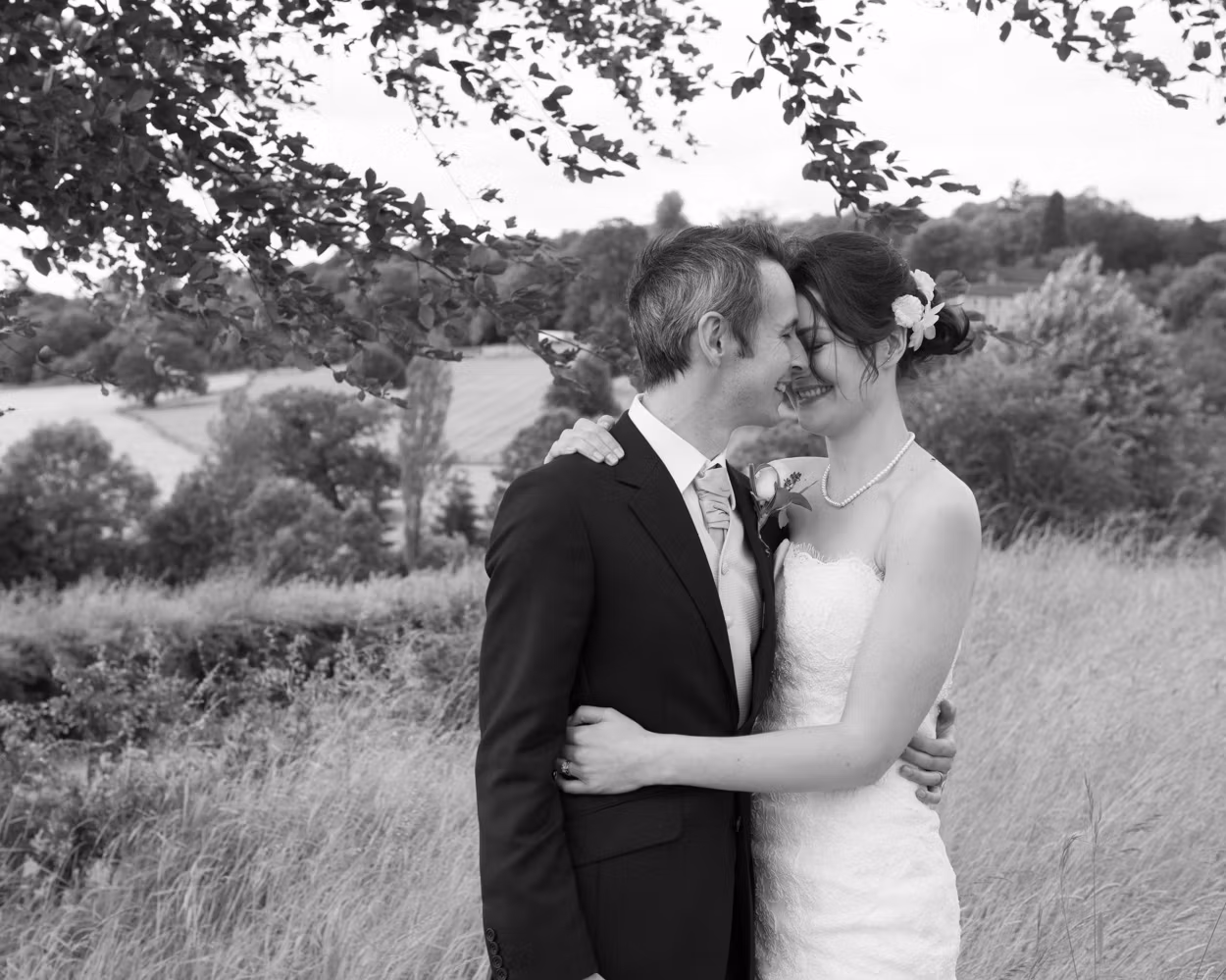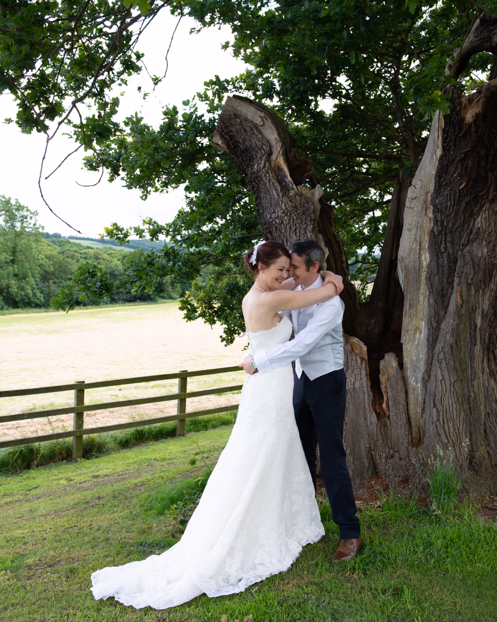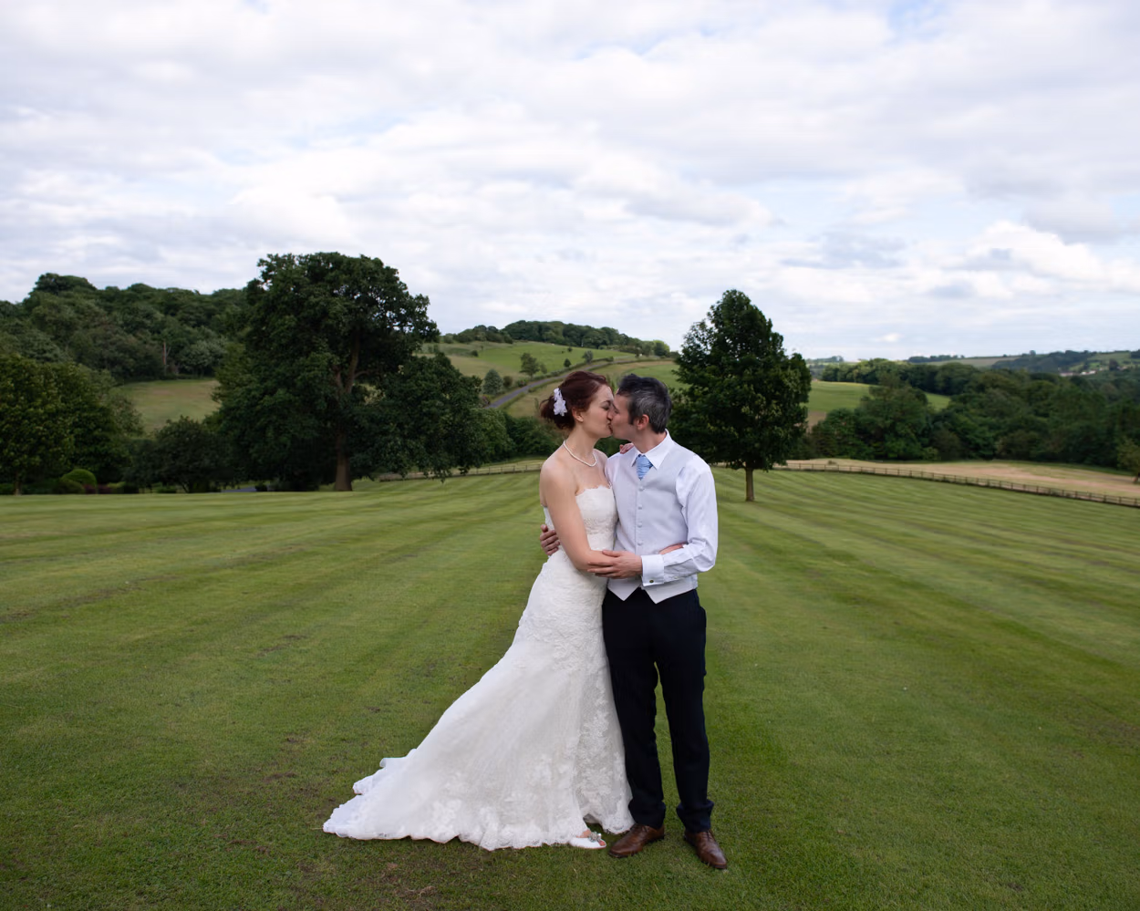 Sweeping lawns. A split tree. Still air. Tanya and Paul together. Calm. Unhurried. Then one last portrait with the hall behind them as dusk began to settle.
