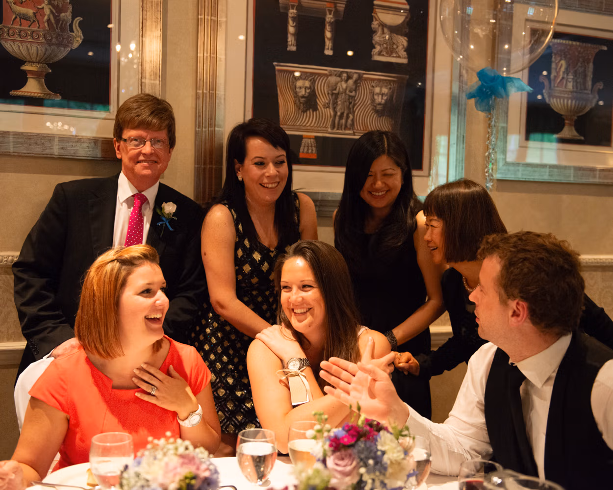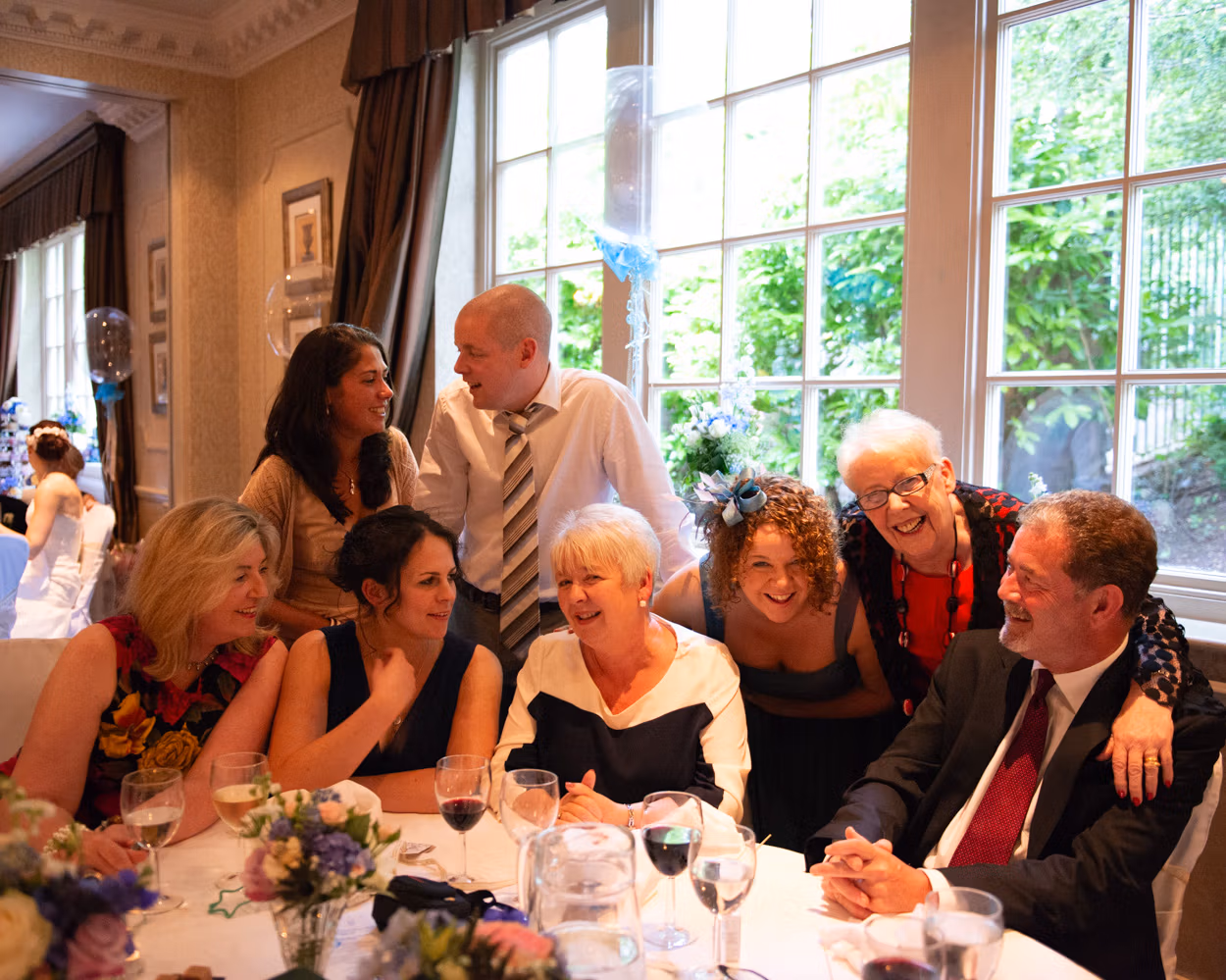 Back inside, the tables became gathering points again. I photographed group moments in a way I’ve loved since the early days. Everyone drawn to one side. Some seated. Some standing. Chatting rather than staring at the camera. Natural energy. Real interaction.