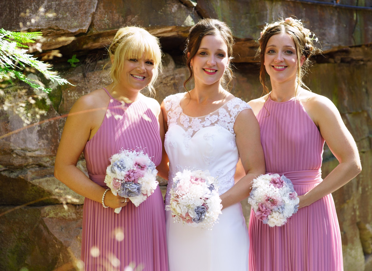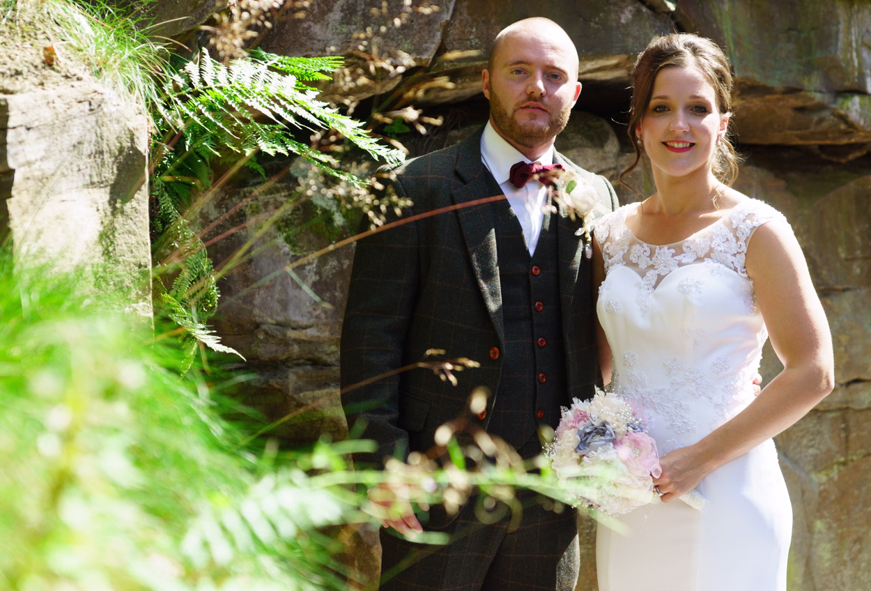 Next, we crossed over the road for beautiful, natural group photos against the rock walls and greenery, followed by a few lovely golden-hour couple portraits. You could easily drive past The Woodman Inn without realising just how special this Huddersfield wedding venue is—and the surrounding beauty of Thunder Bridge makes it even more memorable.