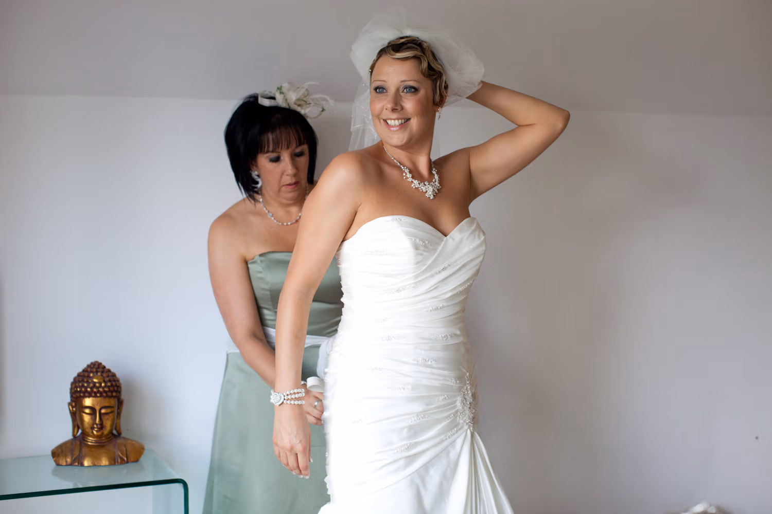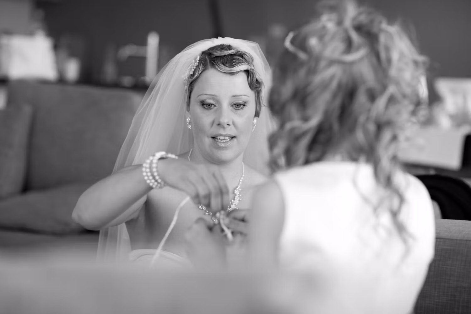 The morning felt calm but buzzing with excitement. Sam, one of the happiest brides I’ve photographed, was surrounded by her closest friends and family — everyone relaxed and enjoying the sunshine outside their lodge. Natural light poured across the Yorkshire landscape, giving me plenty of lovely unposed moments to quietly capture.