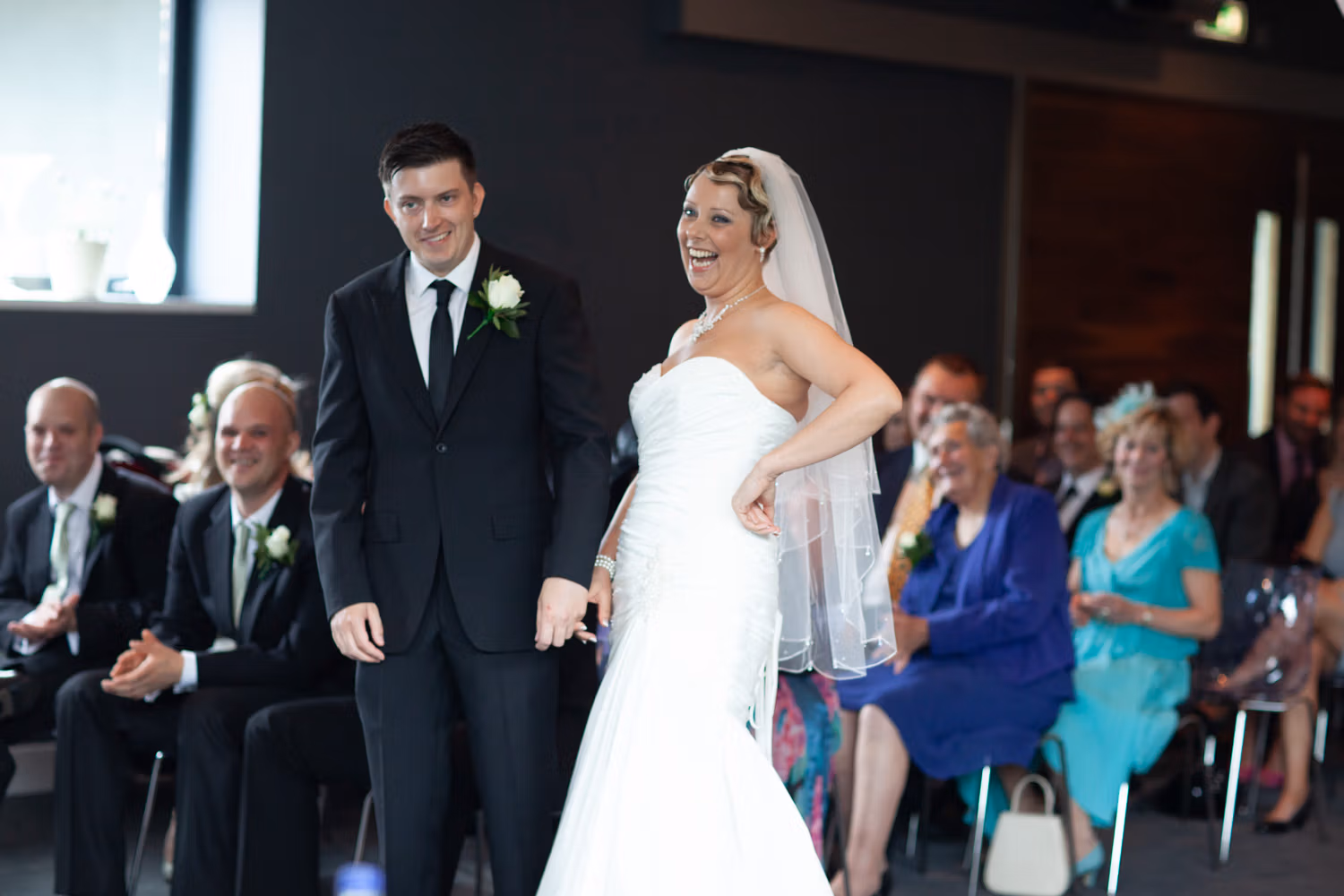 Inside, the ceremony space was filled with natural light and even more warmth. There was laughter, a few happy tears, and so much pride beaming from the groom as Sam walked in. It was one of those genuine moments where everything just clicked — a Yorkshire setting, a lovely couple, and a room full of heart.