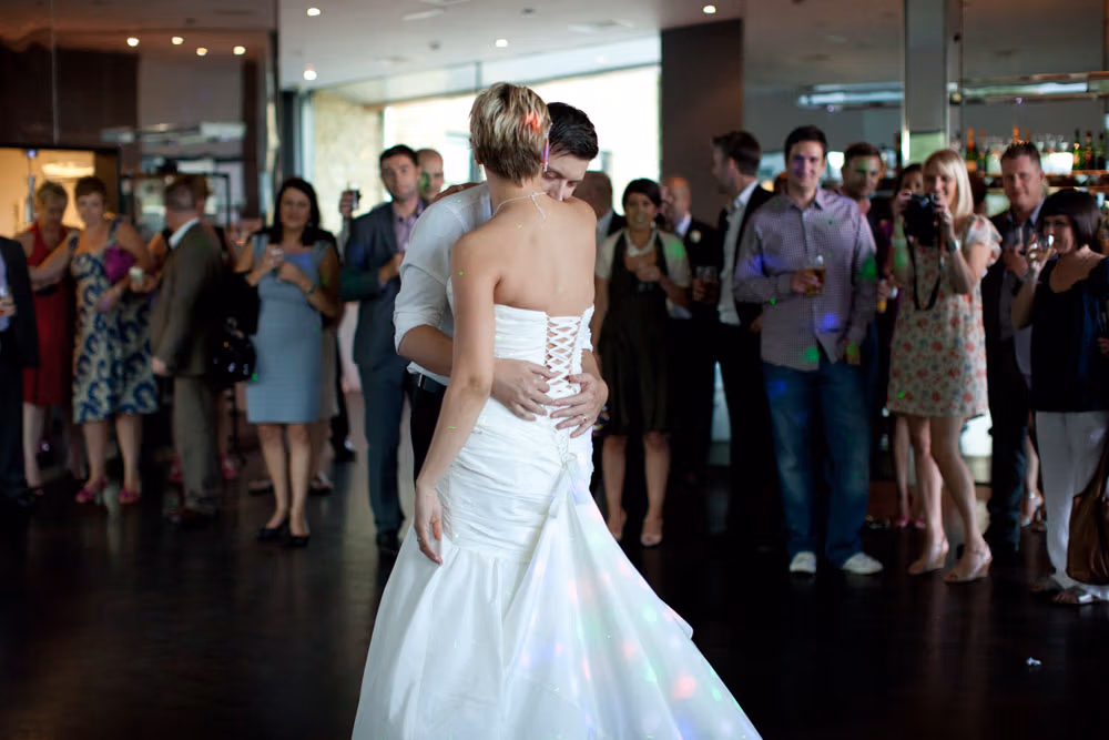 The first dance began with Sam’s beaming smile and the sweetest connection between the two of them. But she had a surprise up her sleeve… Moments later, Sam grabbed the mic and stunned everyone — especially Tim — with a jaw-dropping breakdance performance! Sparks literally flew as a circular saw and metal rod lit up the floor, adding an electrifying twist to the evening.